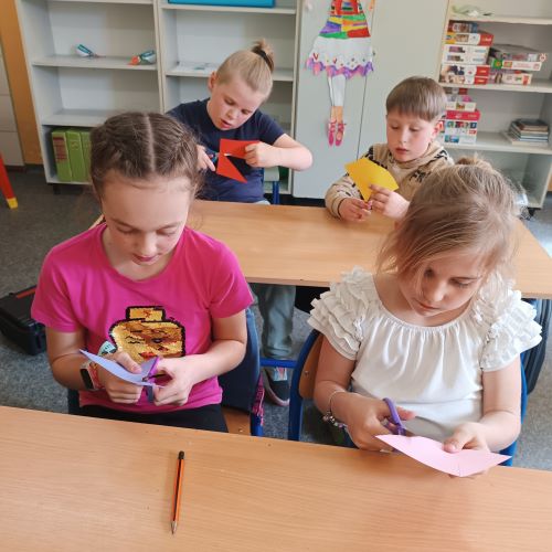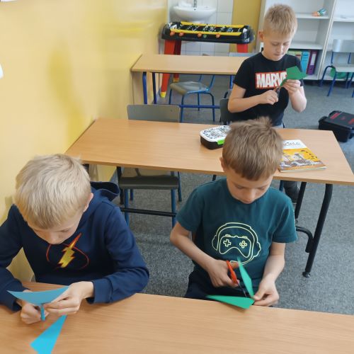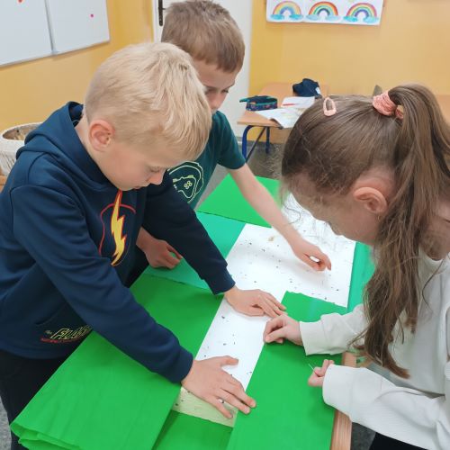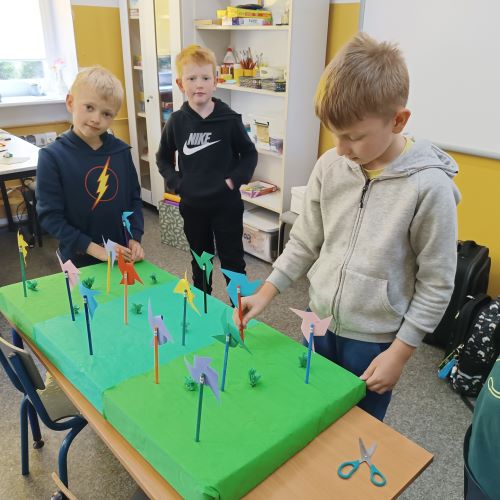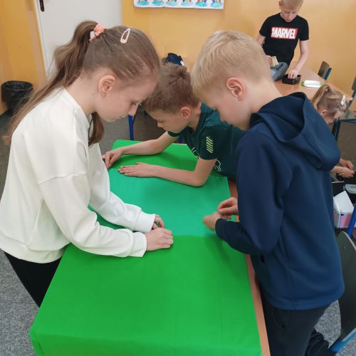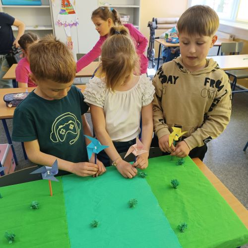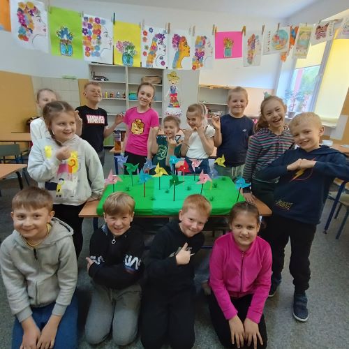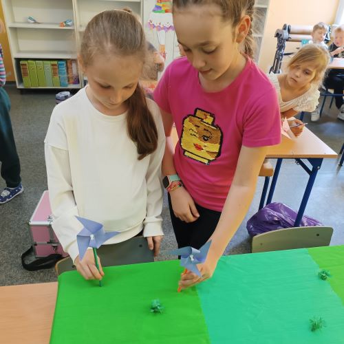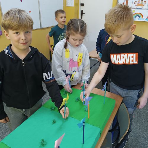 W kwietniu, uczniowie szkolnej świetlicy, zapoznali się z pojęciem „prąd elektryczny". Na zajęciach przypomnieliśmy sobie zasady korzystania z urządzeń podłączonych do sieci. Dowiedzieliśmy się, jak i gdzie powstaje prąd. Porównywaliśmy urządzenia elektryczne używane dawniej i dziś. Po tak dużej dawce wiedzy młodzi pasjonaci zielonej energii zaprojektowali i wykonali makietę farmy wiatrowej.