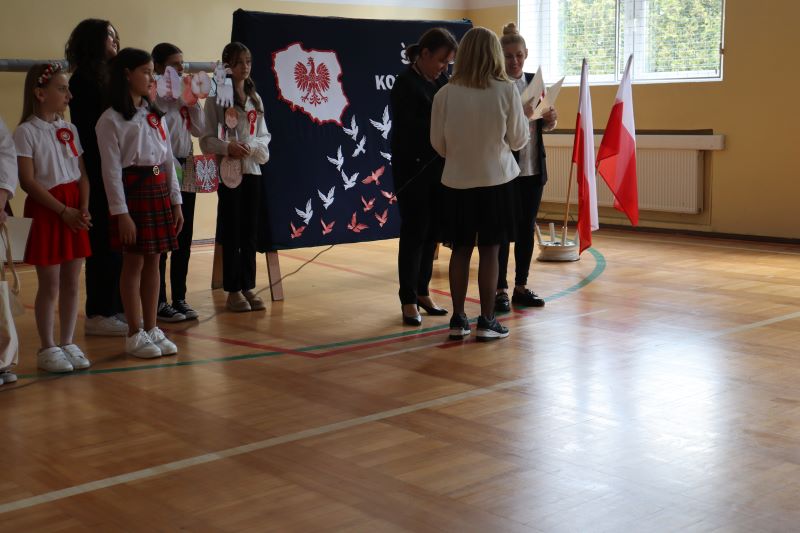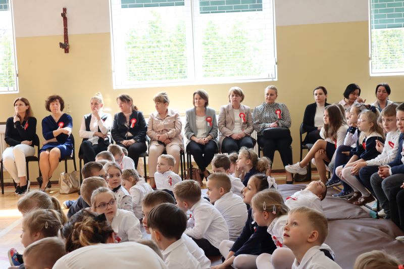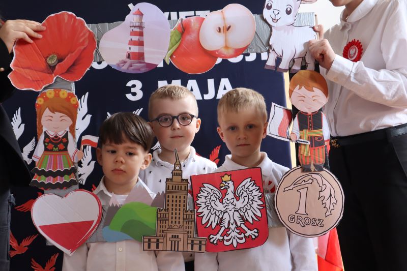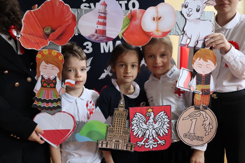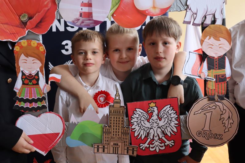 Uczniowie mogli usłyszeć czym jest konstytucja i jaką odgrywa rolę w państwie, a także co oznaczają pojęcia: Bóg, Honor, Ojczyzna. Słowami piosenki uczennice klasy czwartej przypomniały, że był to pierwszy tego typu dokument w Europie, a drugi na świecie. Na koniec Samorząd Uczniowski przygotował fotoramkę i zaprosił przedszkolaków i uczniów do wspólnych zdjęć.