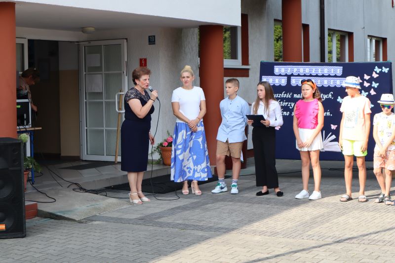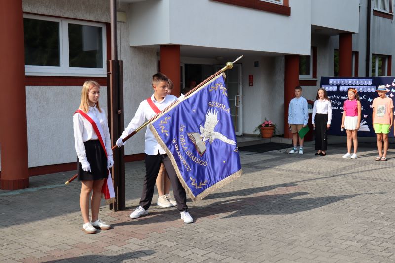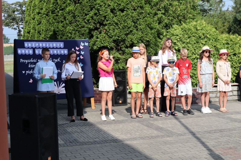 Po wspólnej modlitwie w kościele, uczniowie wraz z nauczycielami udali się do szkoły, gdzie o godzinie 10.00 odbyła się inauguracja nowego roku szkolnego. Uroczystość rozpoczęła się od odśpiewania hymnu państwowego oraz hymnu szkoły. Następnie głos zabrała Pani Dyrektor – Angelika Kałka, która powitała wszystkich uczniów, rodziców, nauczycieli oraz zaproszonych gości. Swoją obecnością zaszczycili nas: Wójt Gminy Sośnie – Adam Harlak, radna powiatu ostrowskiego – Danuta Szwedziak, ksiądz kanonik – Michał Pacyna, sołtys wsi – Jan Rafalski, przedstawiciel Rady Sołeckiej – Jan Dulik, radni – Andrzej Mus i Robert Zydorczak, przedstawicielka KGW – Karolina Bartsch, zarząd Rady Rodziców – Barbara Przybyłek i Magdalena Kuświk. Uczniowie zaprezentowali część artystyczną związaną z pożegnaniem wakacji i powrotem do szkoły. Nawiązali również do 85 rocznicy wybuchu II wojny światowej. Na zakończenie wójt Adam Harlak i radna powiatu Danuta Szwedziak życzyli wszystkim uczniom satysfakcji z nauki i sukcesów w nowym roku szkolnym.