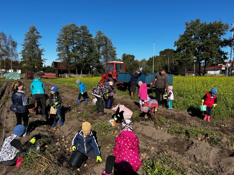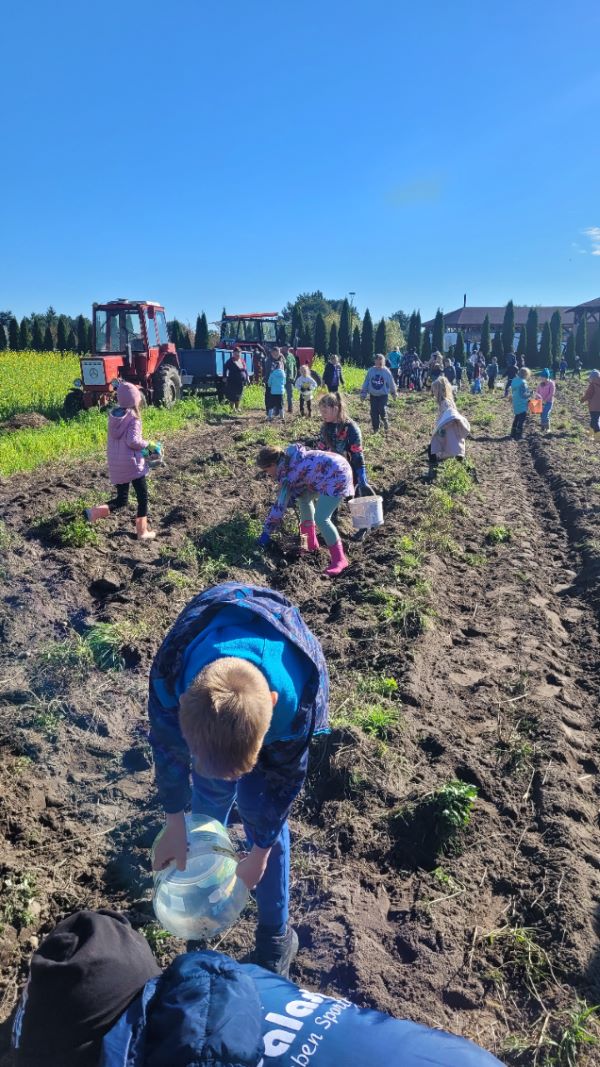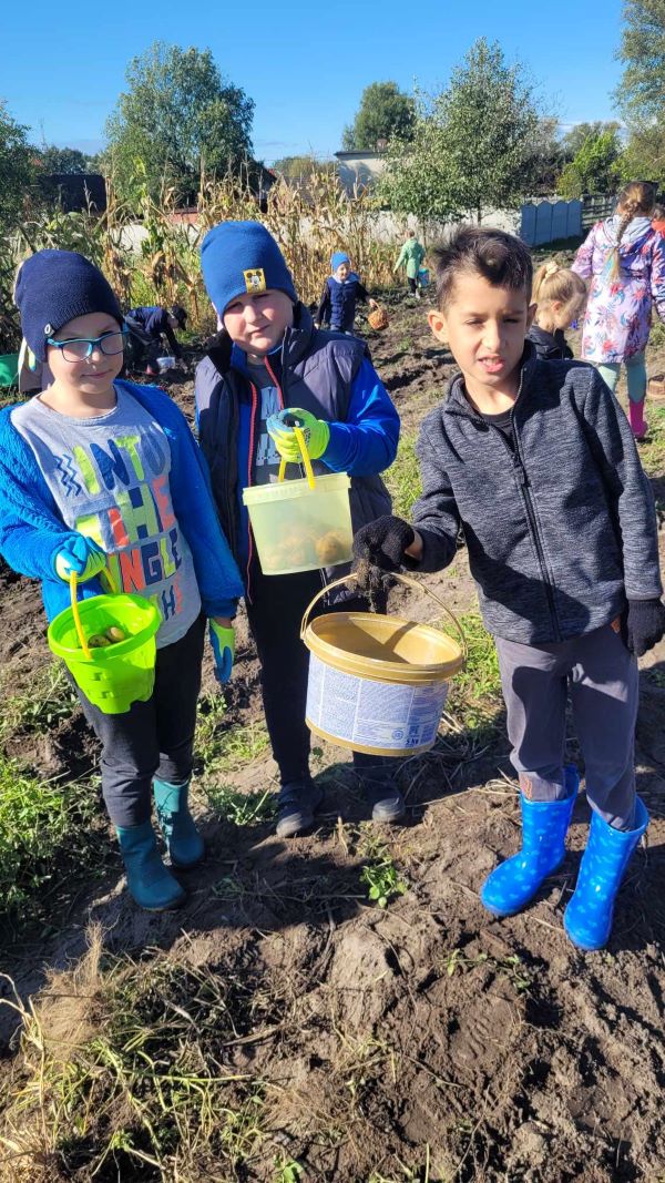 Jedną z jesiennych atrakcji w naszym przedszkolu oraz w klasach I-III były wykopki. Dzieci i uczniowie miały okazję zobaczyć, jak wykopuje się ziemniaki, ale największą atrakcją było ich zbieranie oraz wspólne zabawy w polu.
