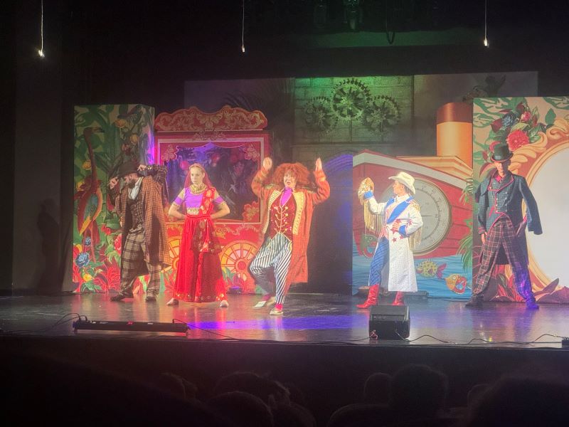 Podróż dookoła świata? Czemu nie…. Pewien dżentelmen z Londynu, postanowił założyć się z kolegami, że przemierzy świat w 80 dni. W podróż udał się pociągiem, statkiem parowym, a także na grzbiecie słonia. W dowcipnej adaptacji powieści udział wzięło pięciu aktorów, którzy wspaniałą grą, śpiewem, a także oryginalnymi strojami zachwycili szkolną publiczność, za co zostali nagrodzeni gromkimi brawami.