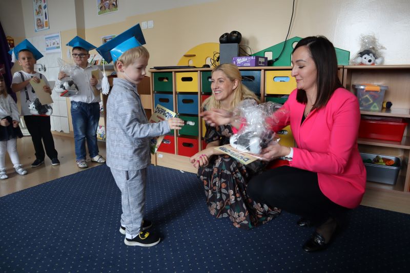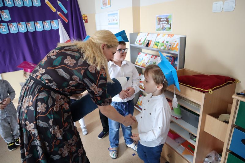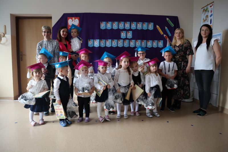 Uroczystość rozpoczęły występy dzieci z grupy „Rybek” i „Żuczków”. Mali artyści zaprezentowali przygotowane piosenki, tańce oraz wierszyki. Dla większości był to pierwszy, bardzo ważny występ. Po części artystycznej nastąpił akt pasowania, czyli dotknięcie ramienia każdego przedszkolaka ogromną kredką przez Panią Dyrektor Angelikę Kałkę. Dla przedszkolaków było to wielkie przeżycie, a dla rodziców powód do dumy i zadowolenia ze swoich pociech.