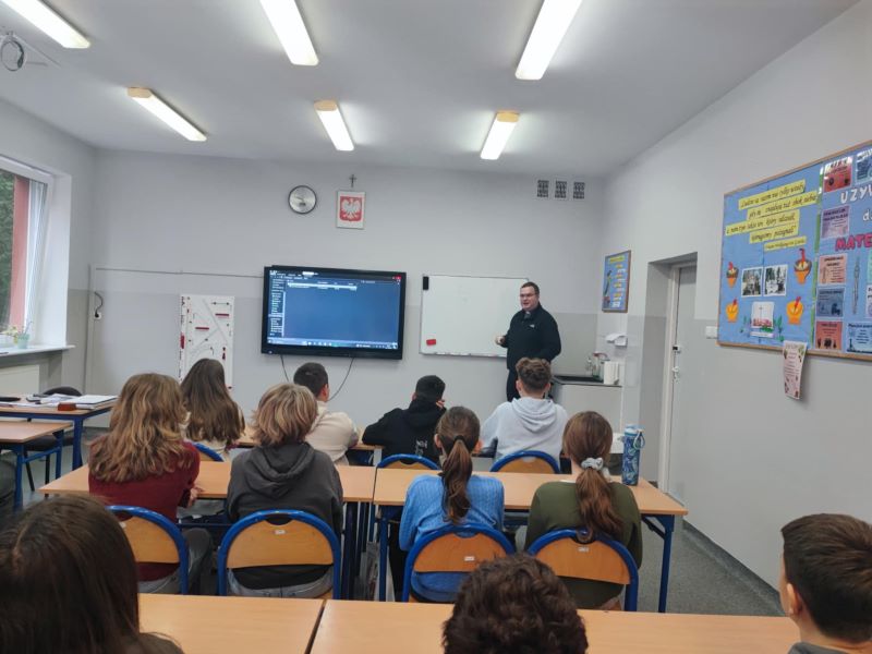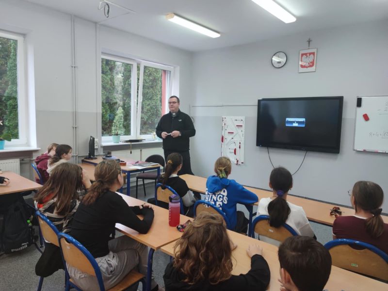 Uczestniczyli w nim uczniowie klas IV – VIII. Ks. Łukasz, po ukończeniu Gimnazjum w Granowcu, uczył się w Liceum Ogólnokształcącym nr 2 w Ostrowie Wlkp., a następnie studiował przez sześć lat w Wyższym Seminarium Duchownym w Kaliszu. W 2014 roku otrzymał święcenia kapłańskie. Jest doktorantem Instytutu Historii Kościoła na Papieskim Wydziale Teologicznym we Wrocławiu. Służył Bogu i ludziom w różnych parafiach. Uczył się też w Akademii Wojsk Lądowych im. Generała Tadeusza Kościuszki we Wrocławiu. Uzyskał stopień wojskowy porucznika. Obecnie jest ojcem duchownym w Seminarium Duchownym w Poznaniu. Jest też autorem książki pt. „Kraina Ducha Gór”. Ks. Łukasz podzielił się wspomnieniami ze szkoły. Opowiedział o swoich życiowych wyborach i szerokich zainteresowaniach. Uczniowie obejrzeli zdjęcia z ważnych życiowych wydarzeń, medale i pamiątki. Zadawali pytania, na które nasz gość chętnie odpowiadał.