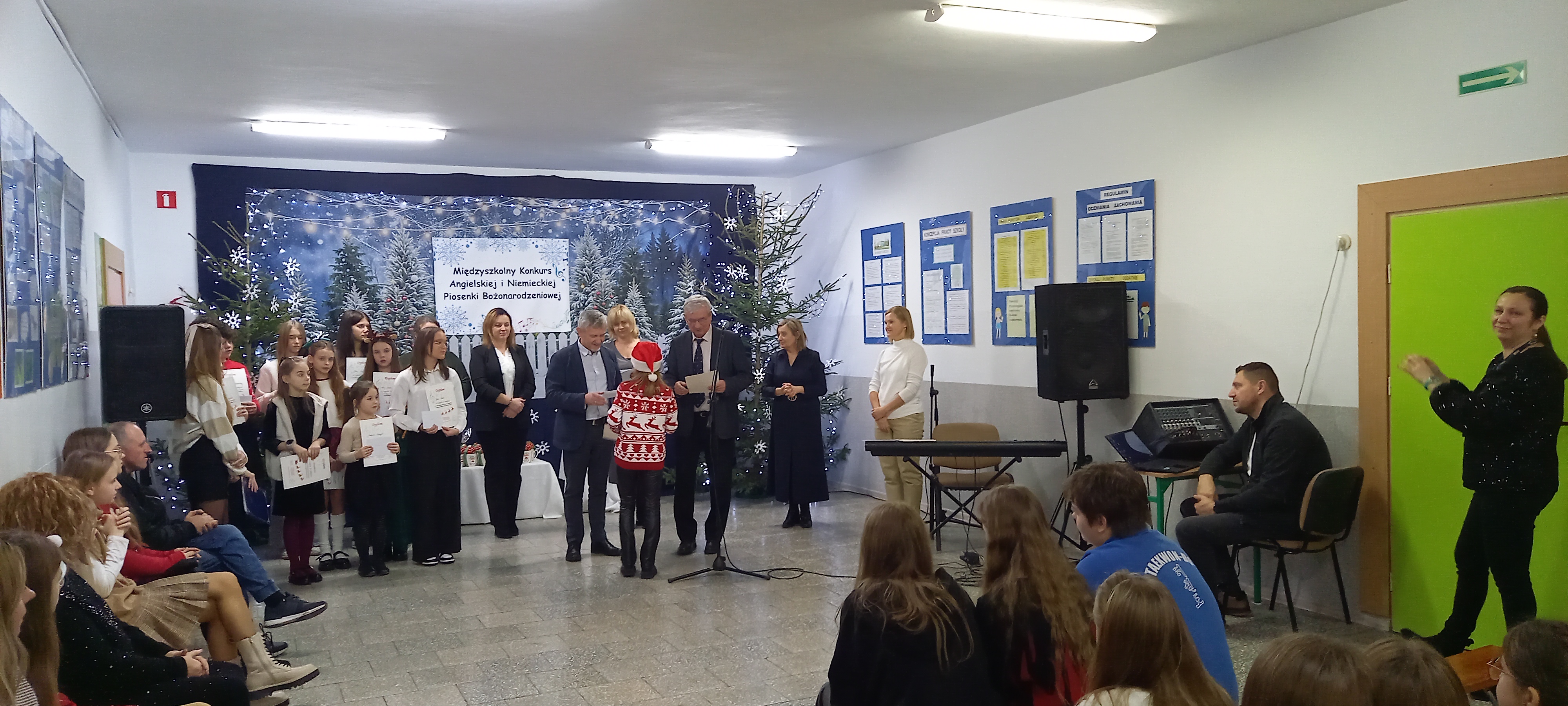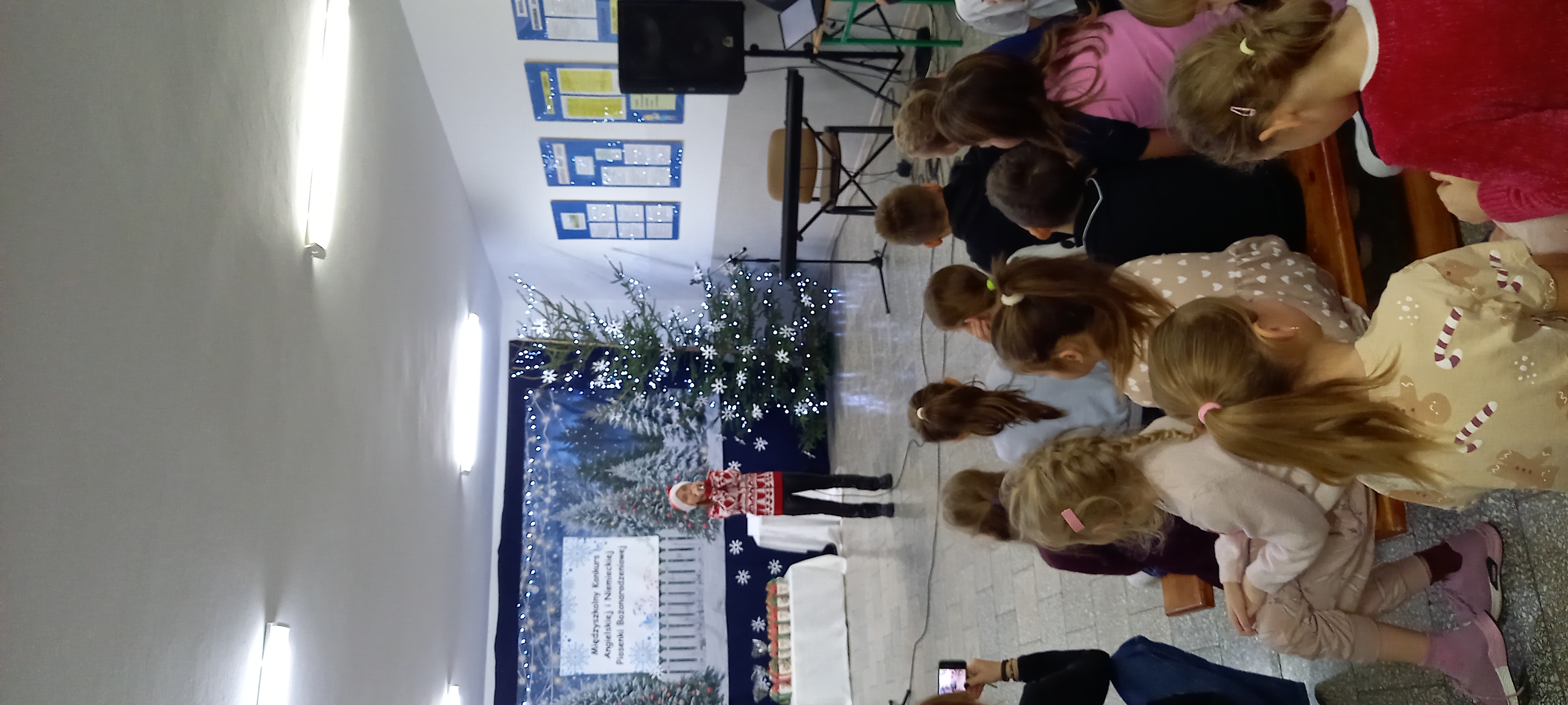 W kategorii klas III – IV reprezentował nas Adam Szewczyk z kl. III z piosenką „ Jingle bells”. W kategorii klas V – VI były to: Nikola Szewczyk z kl. V i Alina Rapalska z kl. VI, zaś w najstarszej kategorii wiekowej: Aleksandra Biegańska z kl. VII i Daria Rudowicz z kl. VIII. Do konkursu przystąpili uczniowie ze szkół podstawowych z gmin: Sośnie i Odolanów. W sumie zaprezentowano 32 utwory, które wprowadziły wszystkich w świąteczny nastrój. Poziom konkursu był bardzo wysoki, a występy uczniów ciekawe ze względu na wartość artystyczną. W każdej kategorii wiekowej przyznano po trzy miejsca. W najstarszej kategorii Daria Rudowicz z piosenką „I’ll be home” zajęła III miejsce, zaś w kategorii klas V - VI Nikola Szewczyk otrzymała wyróżnienie za wykonanie piosenki „So this is Christmas”. Gratulujemy i życzymy dalszych sukcesów!