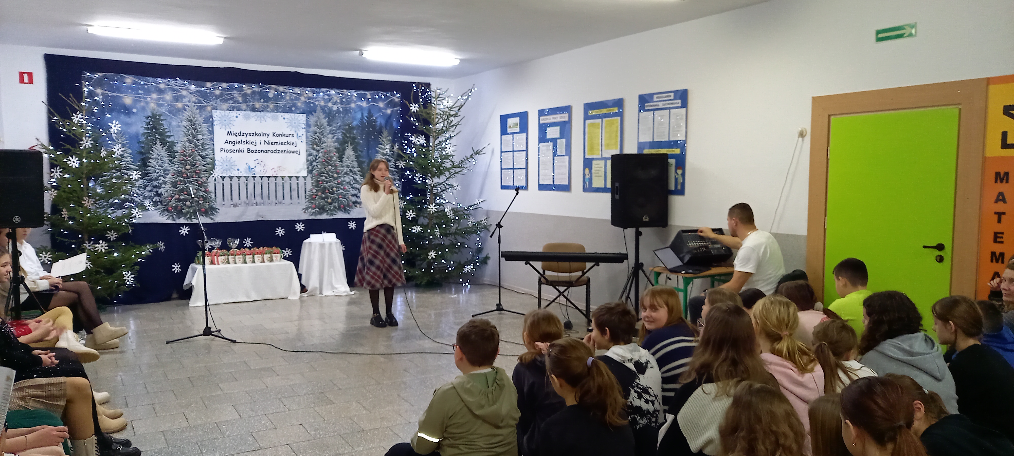 W dniu 10 grudnia br. w Zespole Szkół w Sośniach odbył się Międzyszkolny Konkurs Bożonarodzeniowej Piosenki w Języku Angielskim i Niemieckim. Uczniowie prezentowali swoje umiejętności wokalne, językowe i artystyczne w trzech kategoriach wiekowych.