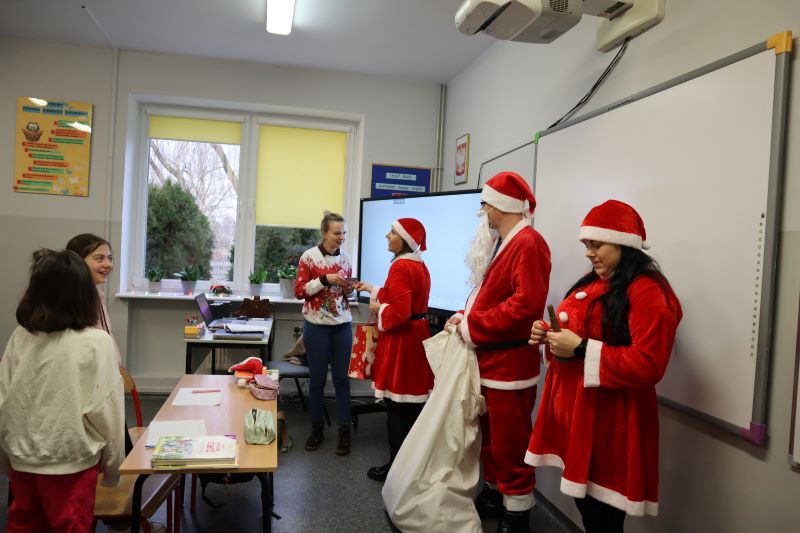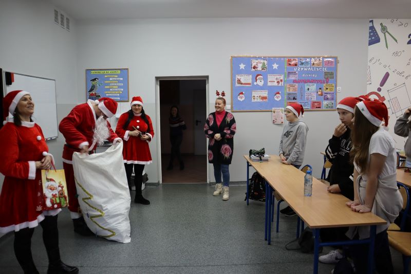 Święty Mikołaj odwiedził przedszkolaków, a potem każdą klasę. Dzieci zachwycone wizytą wspaniałego gościa śpiewały piosenki i recytowały wiersze. Po krótkiej rozmowie, nadeszła długo oczekiwana chwila – rozdawanie prezentów. Uśmiechy na twarzach uczniów były bezcenne, a atmosfera pełna magii i świątecznego ducha. To był niezapomniany dzień, który na długo pozostanie w pamięci wszystkich uczniów i nauczycieli. Dziękujemy Świętemu Mikołajowi za wizytę i już nie możemy doczekać się kolejnych świątecznych niespodzianek!