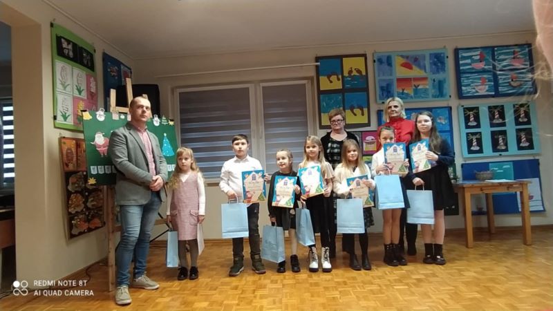Wzięli w nim udział uczniowie naszej szkoły wraz z rodzicami. Na konkurs wpłynęło 199 kartek. Przy ocenie prac jurorzy brali pod uwagę: samodzielność, pomysłowość, funkcjonalność i estetykę wykonania. Komisja nagrodziła 34 prace. Wśród nich znalazły się cztery kartki wykonane przez nasze uczennice. Laureatkami w kategorii „szkoły podstawowe kl. I-III” zostały : Pola Bojarczyk i Urszula Rapalska, natomiast w kategorii „szkoły podstawowe kl. IV-VIII”: Maja Pawlak i Dorota Rapalska. Dyplomy i nagrody laureaci odebrali z rąk sekretarz gminy Sieroszewice Mirosławy Busza i dyrektor Gminnej Biblioteki Publicznej w Sieroszewicach Marii Marciniak.
