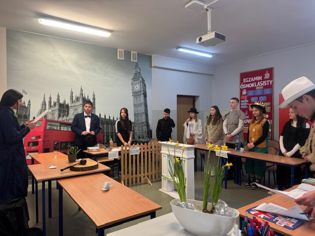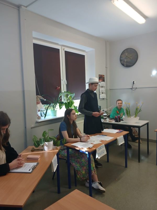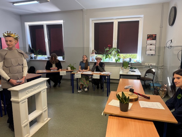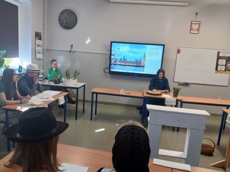 19 lutego klasa VIII wraz z panią Anetą Wieją przygotowała nietypową lekcję z języka polskiego. Uczniowie w ramach omawiania lektury Juliusza Słowackiego pt.: „Balladyna” postanowi wystawić krótki spektakl, prezentujący rozprawę sądową nad tytułową Balladyną.