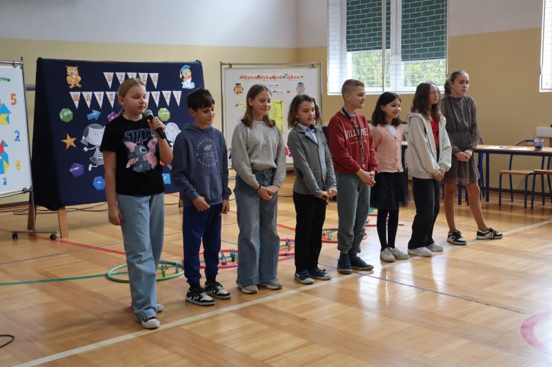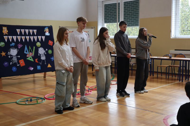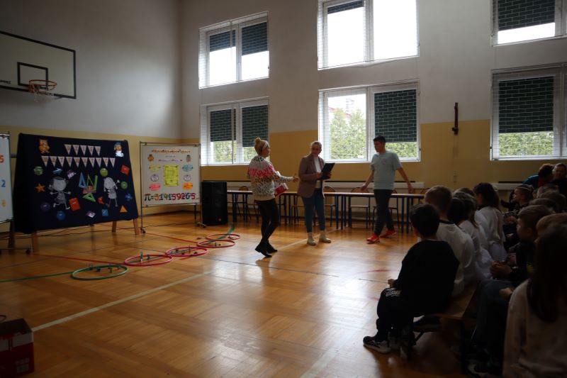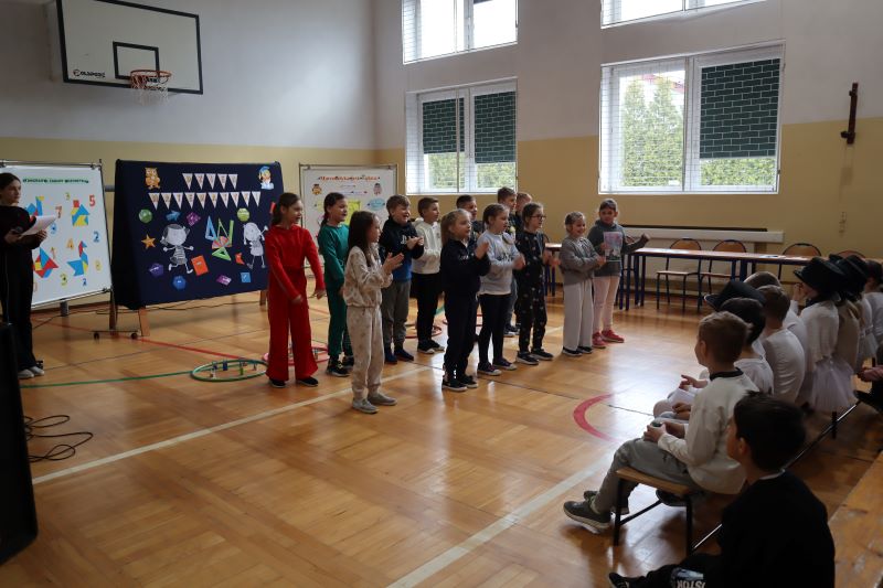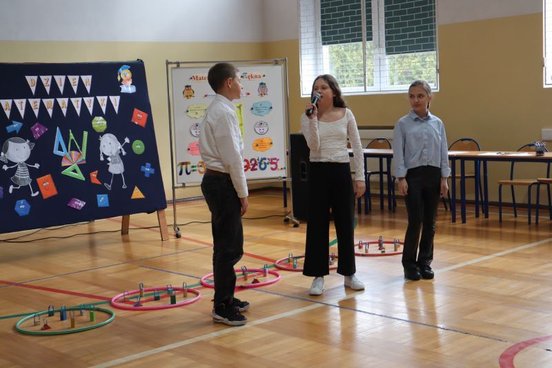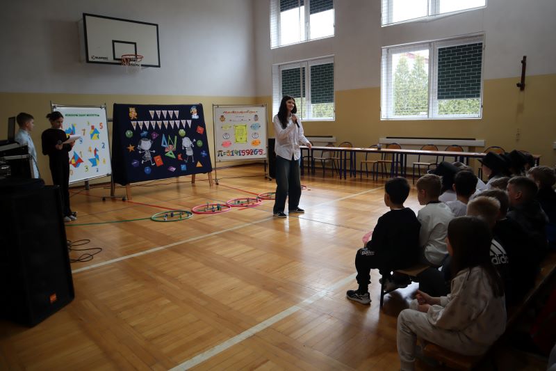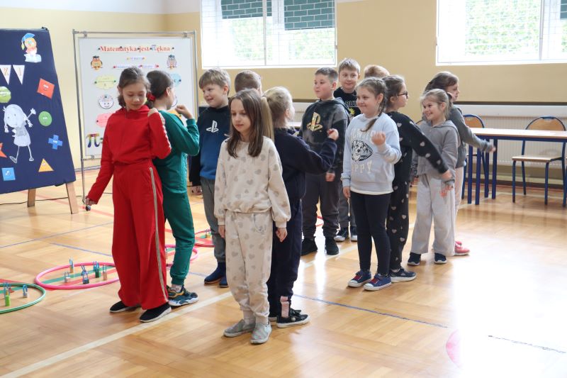 Tegoroczny Międzynarodowy Dzień Matematyki w naszej szkole obchodziliśmy 14 marca, kiedy to swoje święto miała także Liczba Pi. Z tej okazji cała społeczność szkolna spotkała się w specjalnie przygotowanej sali gimnastycznej. Spotkanie rozpoczęło się od części artystycznej, w której każda klasa zaprezentowała krótki występ o tematyce matematycznej: piosenki, wiersze, układy taneczne. Druga część szkolnego święta miała charakter konkursu. Uczniowie klas IV – VIII rywalizowali ze sobą z zakresu wiedzy matematycznej, logicznego myślenia i sprawności manualnych. Wszyscy doskonale poradzili sobie z zadaniami, co sprawiło, że na ich twarzach pojawiał się uśmiech i satysfakcja z dobrze wykonanej pracy. Udział w zabawach matematycznych pokazał, że ta niezwykła dziedzina nauki, to nie tylko liczby, wzory i trudne zadania, ale również znakomita przygoda i mnóstwo zabawy. Do zobaczenia za rok!