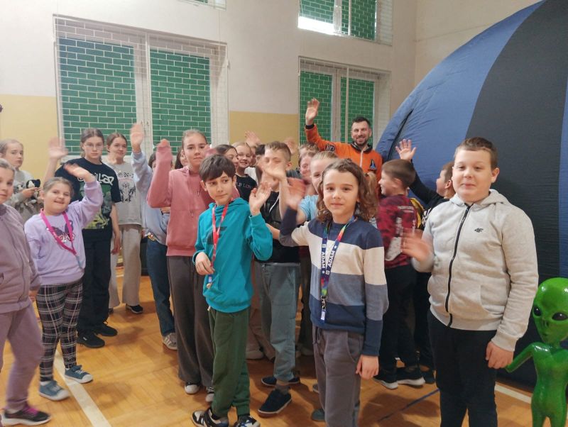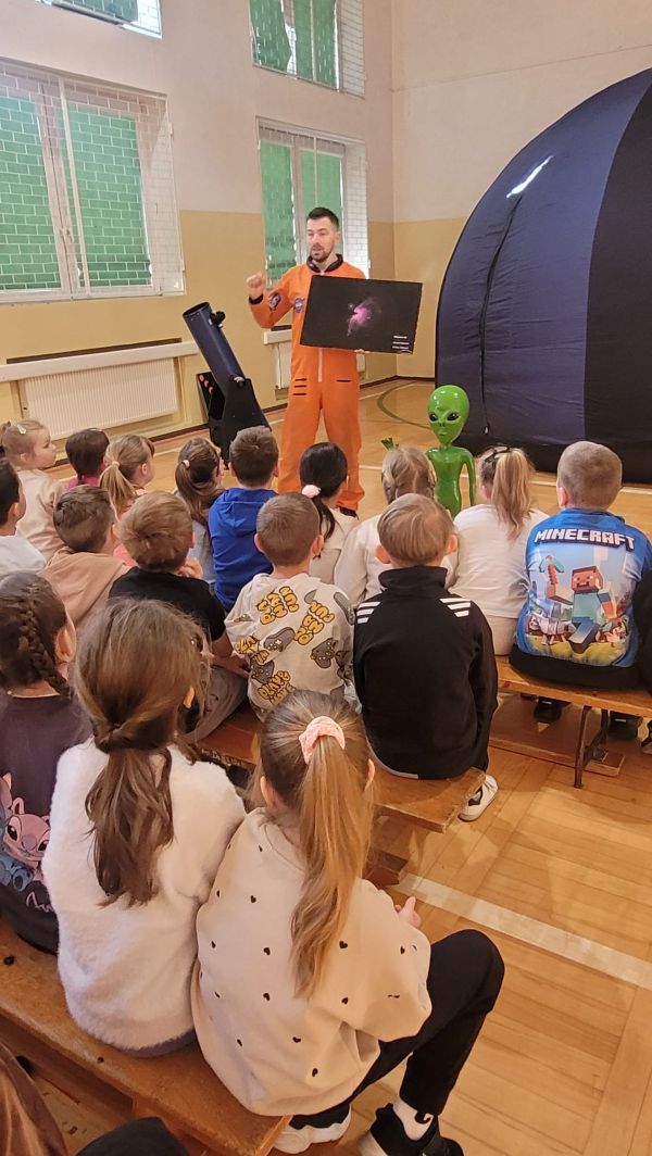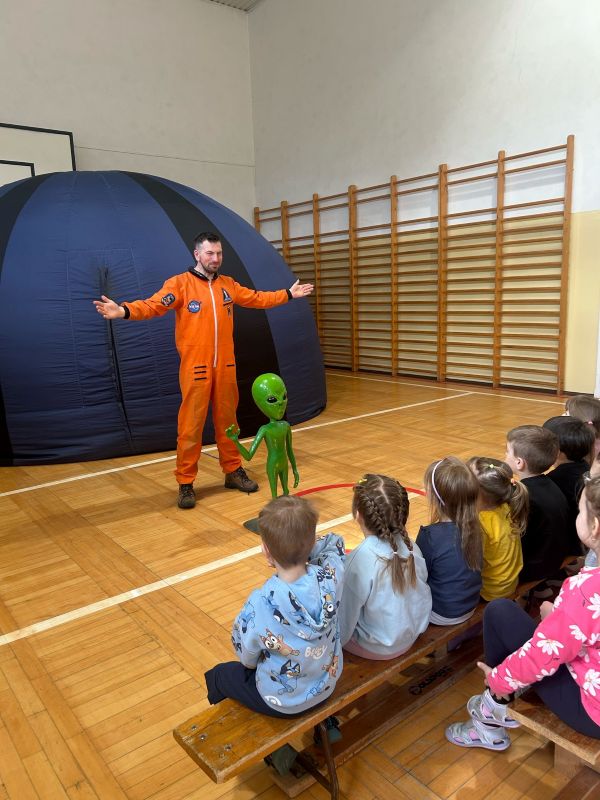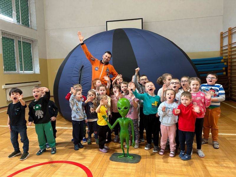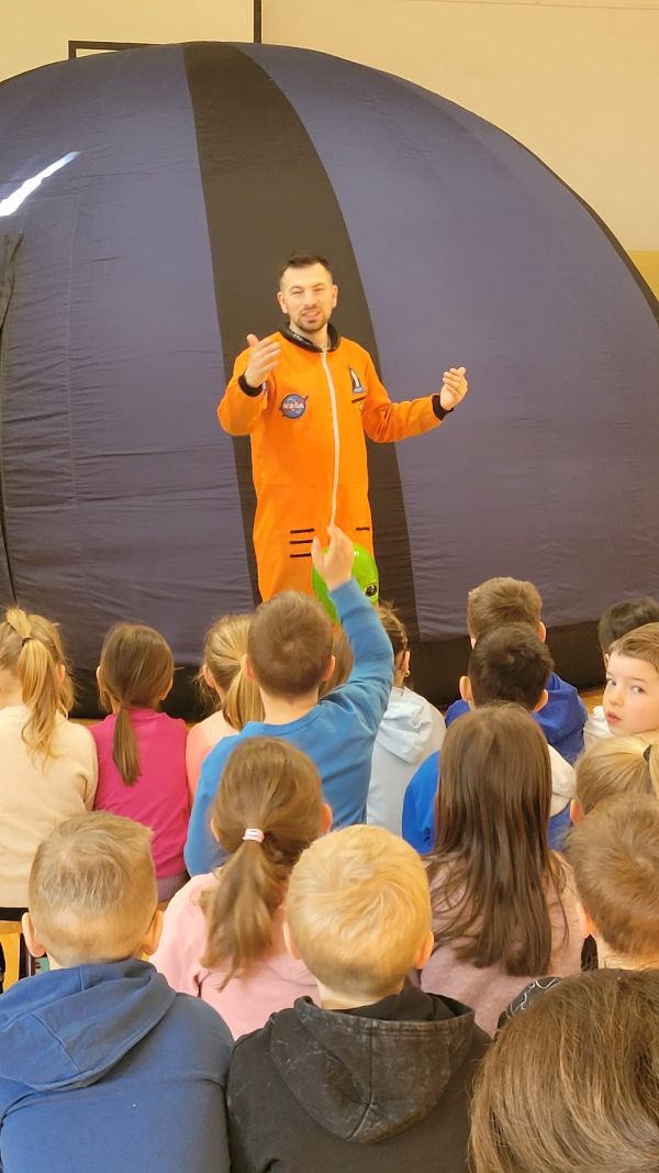 Pracując w Astro Arenie prowadzi działania mające na celu popularyzację astronomii i nauk ścisłych. Chętnie dzieli się swoją pasją i zaraża nią nie tylko dzieci ale i dorosłych. W naszej szkole przeprowadził warsztaty w Mobilnym Planetarium Astro Arena, łącząc edukację z kosmiczną zabawą. Celem zajęć była nie tylko edukacja astronomiczna ale przede wszystkim inspiracja do rozwijania własnych zainteresowań. Przybliżył dzieciom gwiazdy i gwiazdozbiory, z niebywałą pasją zaprezentował też swoje hobby, jakim są obserwacje nieba. Uczniowie mieli okazję dotknąć prawdziwego meteorytu. W najbliższym czasie, przy sprzyjających warunkach pogodowych przeprowadzi z uczniami wieczorne obserwacje nieba za pomocą profesjonalnego sprzętu. Już dziś wszystkich chętnych uczniów serdecznie zapraszamy!