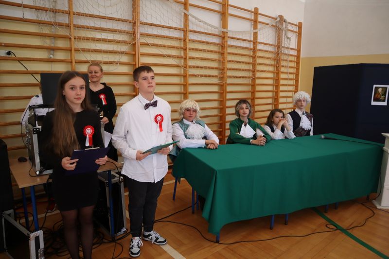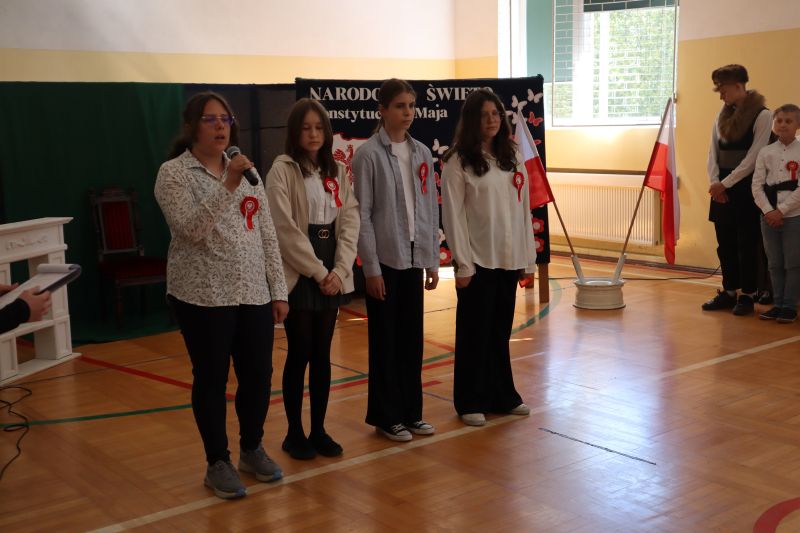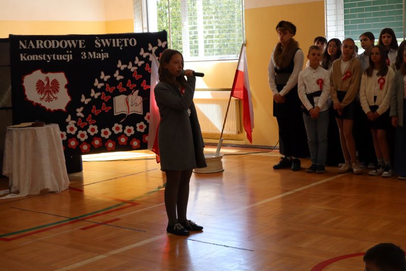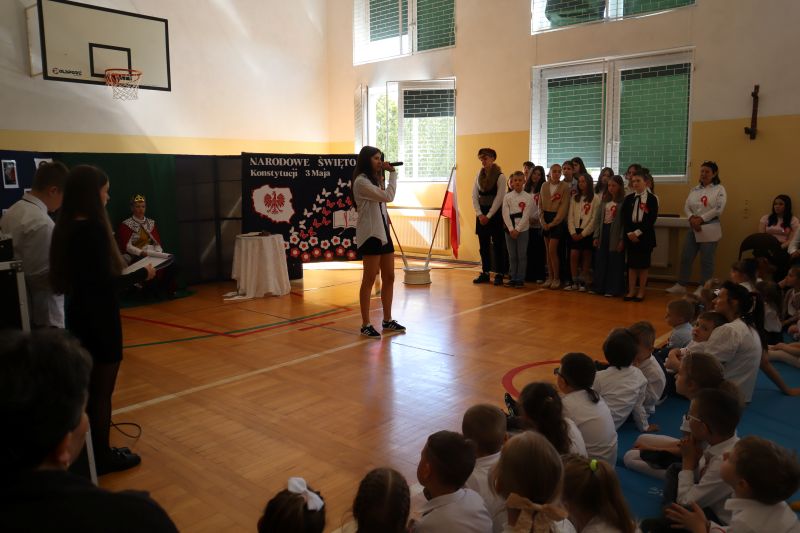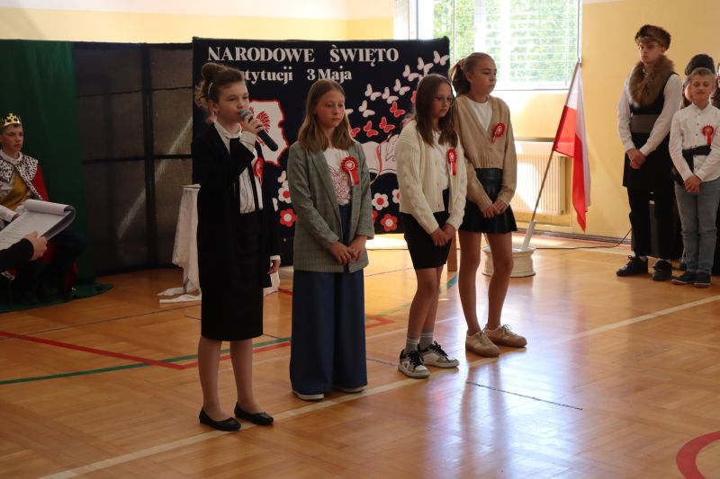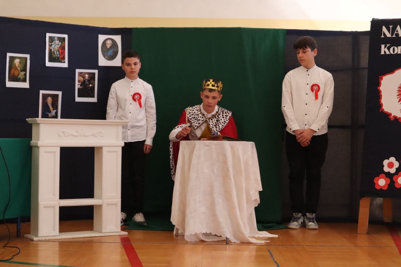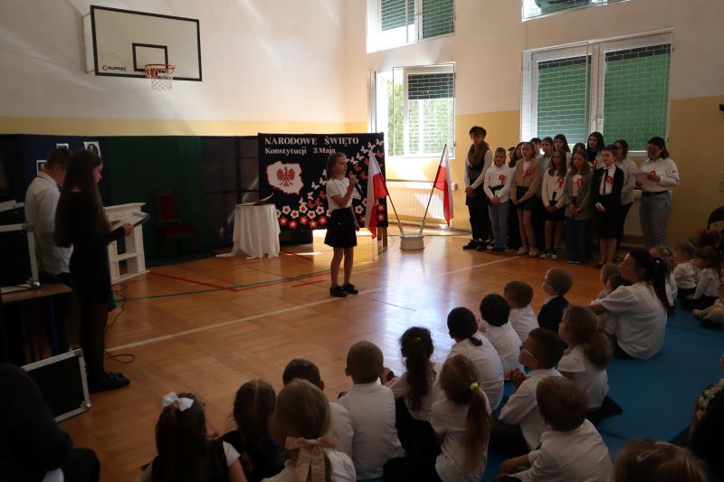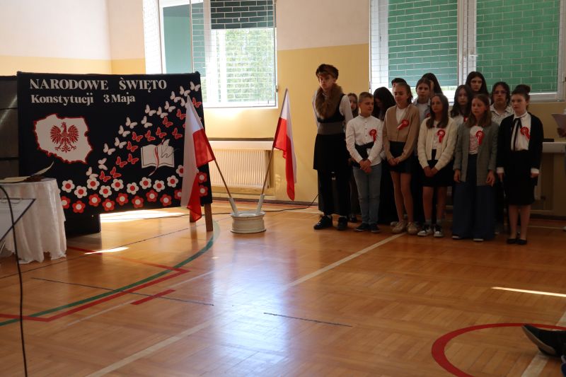W poniedziałek, 28 kwietnia 2025 roku w naszej szkole odbyła się uroczysta akademia poświęcona rocznicy uchwalenia Konstytucji 3 Maja.