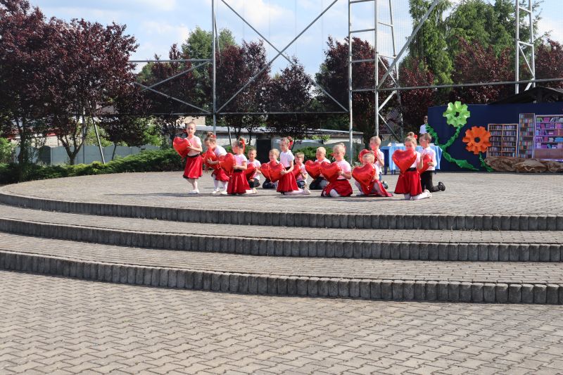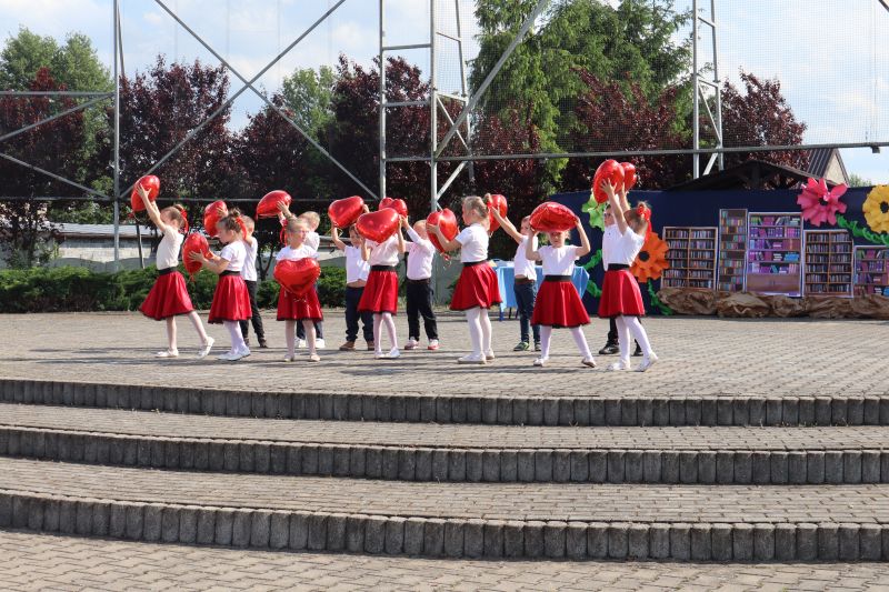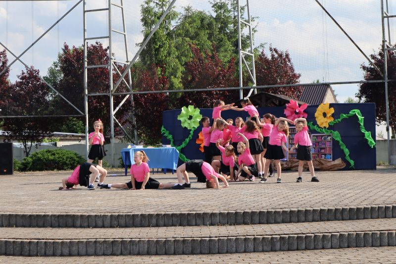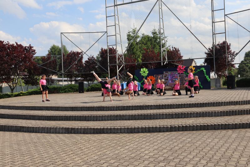 W programie festynu rodzinnego nie zabrakło występów najmłodszych przedszkolaków. Maluszki swoim tańcem „Dzik jest dziki” zapisały się w pamięci niektórych na pewno na długo, a choreografia pokazowa starszych kolegów do piosenki „Cudownych rodziców mam” wzruszyła zgromadzonych do łez. Nie zabrakło również występów dzieci i młodzieży z poszczególnych grup wiekowych, którzy zaprezentowali na scenie swoje umiejętności taneczne przygotowane przez szkołę taneczną „Jaskier”. Na scenie mogliśmy gościć również młodzież ze Studia Tańca „System”. Natomiast w ramach koła teatralnego klasa VI wystawiła inscenizację pt. „Przygoda w bibliotece”, która uzmysłowiła widzom potrzebę czytania literatury. Atrakcją dla najmłodszych były dmuchane zamki, wata cukrowa, a także „Piana Party”. Miłą niespodzianką dla mam były upominki, które zostały im wręczone z okazji obchodzonego niedawno Dnia Matki oraz przygotowany dla wszystkich poczęstunek.