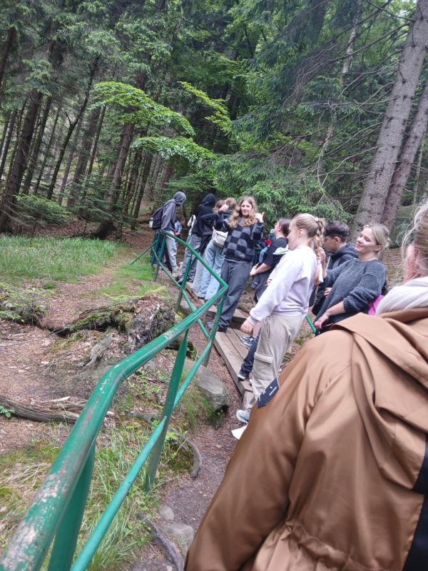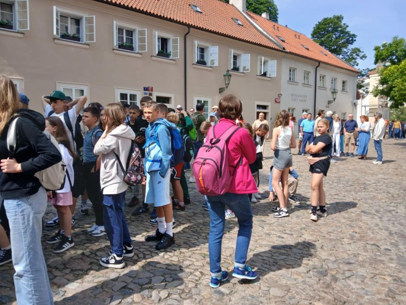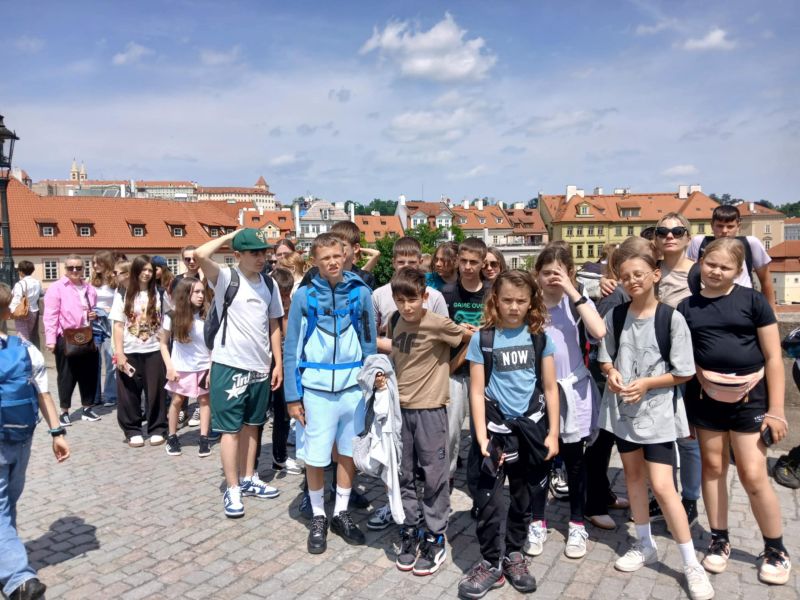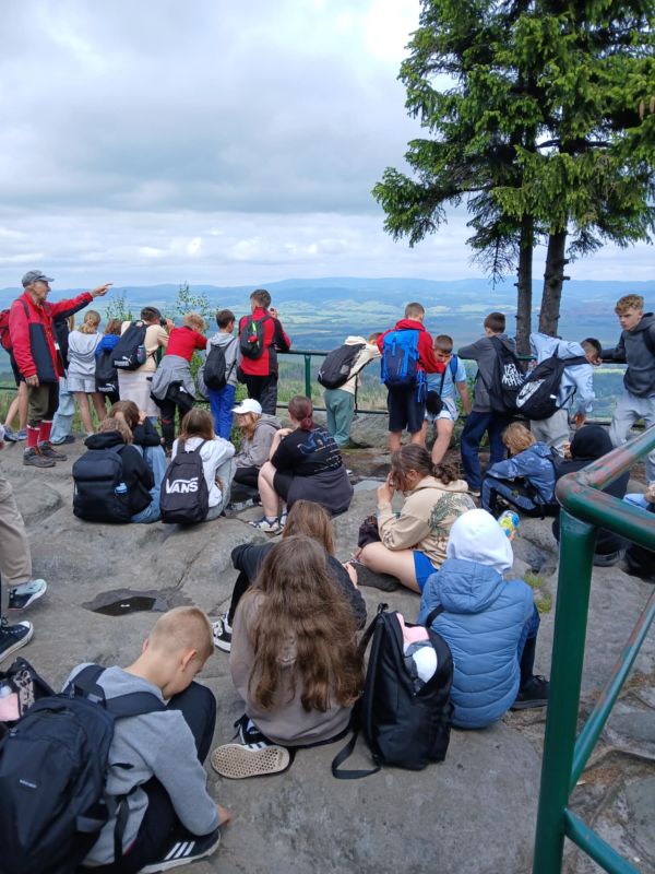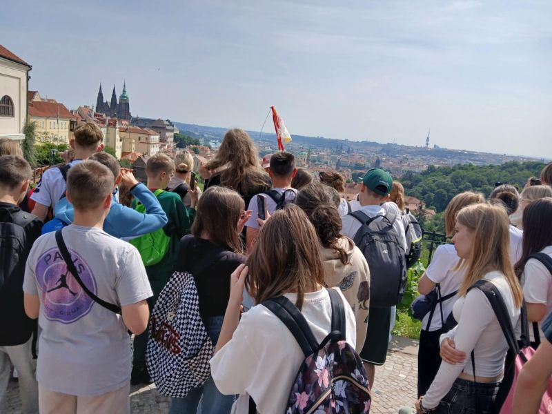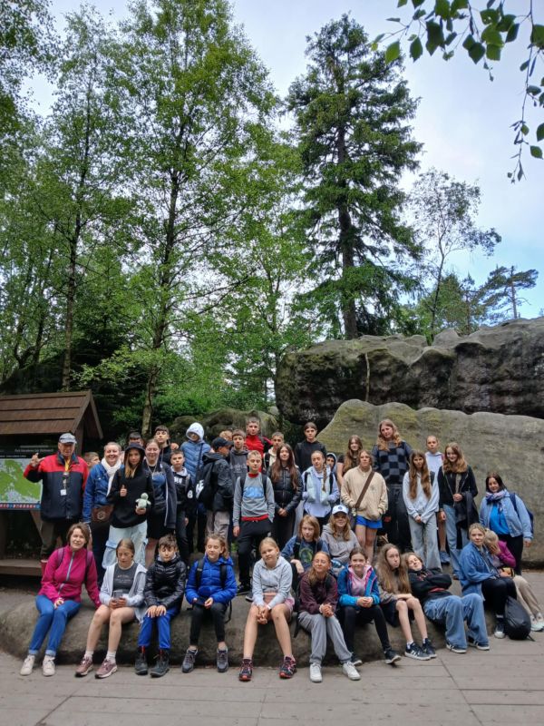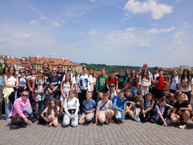 Po południu odwiedzili Polanicę Zdrój. Spacerowali po Parku Zdrojowym oraz deptaku, a następnie udali się na miejsce noclegowe w Kudowie Zdroju. Drugi dzień był bardzo intensywny, a rozpoczął się bardzo wczesnym śniadaniem. Po posiłku uczniowie udali się do stolicy Republiki Czeskiej - Pragi. Miasto przywitało młodzież piękną, słoneczną pogodą oraz mnóstwem ciekawych miejsc do zobaczenia. Nasz przewodnik przybliżył nam tradycje oraz historię tego cudownego miasta oraz pokazał takie znane miejsca jak: Most Karola, Katedrę Świętego Wita, Rynek Starego Miasta czy Praski Zegar Astronomiczny. Po intensywnym zwiedzaniu, uczniowie spróbowali czeskiej kuchni. Zmęczeni, ale zadowoleni wrócili do Kudowy. Ostatni dzień pozwolił na kontakt z naturą oraz podziwianie piękna górskich krajobrazów, ponieważ wspinaliśmy się w tym dniu na Błędne Skały oraz Szczeliniec Wielki. Wszystkim dopisywał dobry humor. Pomimo zmęczenia, w dobrych nastrojach, szczęśliwie wróciliśmy do domu.