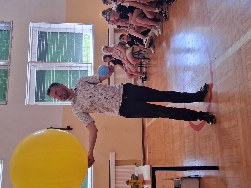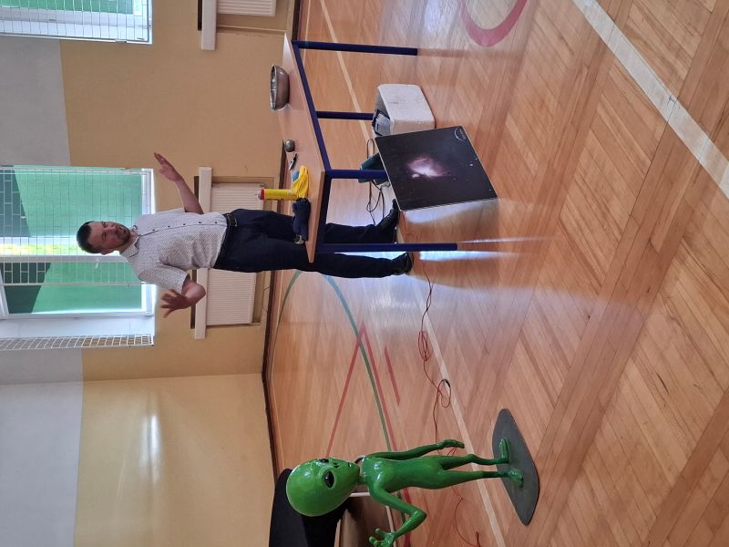 Tym razem były to dzienne obserwacje plam na Słońcu za pomocą profesjonalnego teleskopu. Z ogromna pasją i w bardzo przystępny dla uczniów sposób, Pan Daniel przybliżył trudną wiedzę astronomiczną. Opowiedział o powstawaniu gwiazd, wyjaśnił czym jest grawitacja i jak powstaje czarna dziura, co zobrazował w bardzo sugestywny sposób. Dziękujemy Panu Danielowi i z niecierpliwością czekamy na kolejne spotkanie.