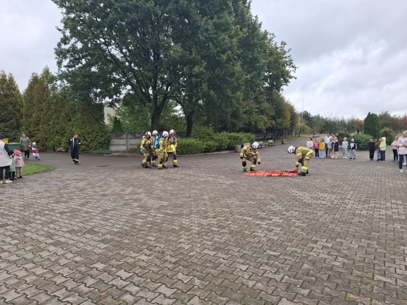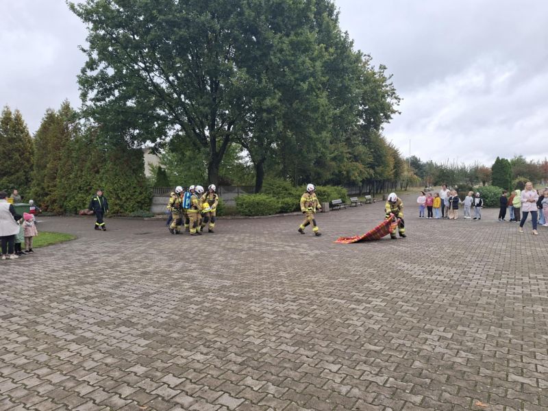 Po sygnale dźwiękowym uczniowie wraz z nauczycielami oraz pracownikami szkoły opuścili budynek szkoły i udali się na miejsce zbiórki w parku rekreacyjno- sportowym. Nauczyciele na podstawie dziennika przekazali pani dyrektor, prowadzącej akcję ewakuacyjną, informacje dotyczące stanu liczebności klas. Okazało się, że na miejscu brakowało pani Anety Wiei, którą udało się strażakom odszukać i bezpiecznie doprowadzić na miejsce zbiórki. Takie alarmy próbne to bardzo ważna sprawa, która ma za zadanie przygotować nas do odpowiedniego postępowania podczas prawdziwej ewakuacji na wypadek pożaru lub innego zagrożenia.