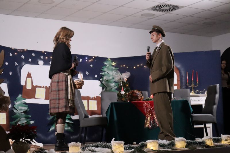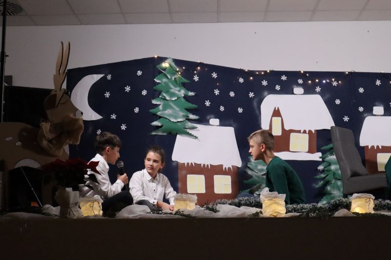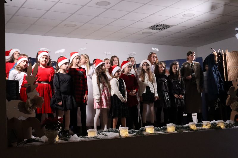 Pierwszą część programu stanowiły występy artystyczne dzieci i młodzieży - układy taneczne, świąteczne piosenki.Wystawiono również przedstawienie pt. „Dziewczynka z zapałkami”. Występujący wykazali się talentem, zaangażowaniem i odwagą, a publiczność nagradzała ich gromkimi brawami. Przygotowano również kiermasz ozdób świątecznych, wykonanych przez uczniów oraz ich rodziców. Nie zabrakło także poczęstunku, który umilał wspólne spędzanie czasu. Nie zabrakło Mikołaja, na którego dzieci czekały z ogromną radością. Wydarzenie przebiegło w ciepłej, rodzinnej atmosferze i wprowadziło wszystkich w nastrój nadchodzących Świąt Bożego Narodzenia.