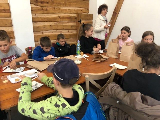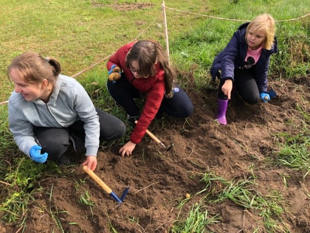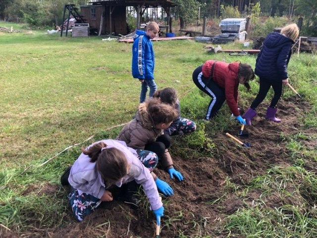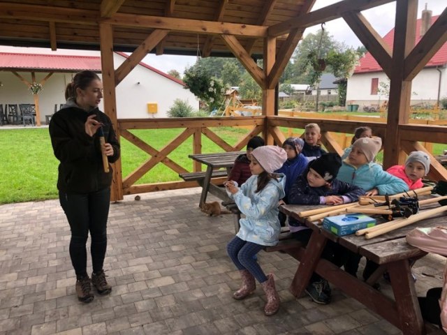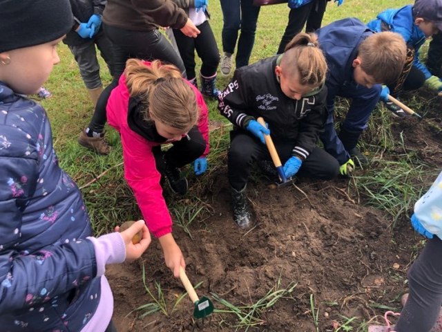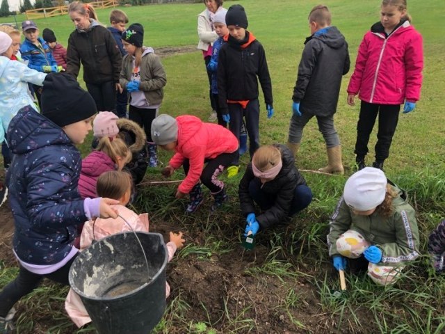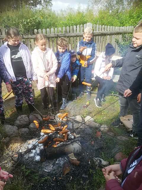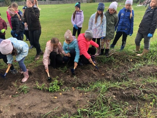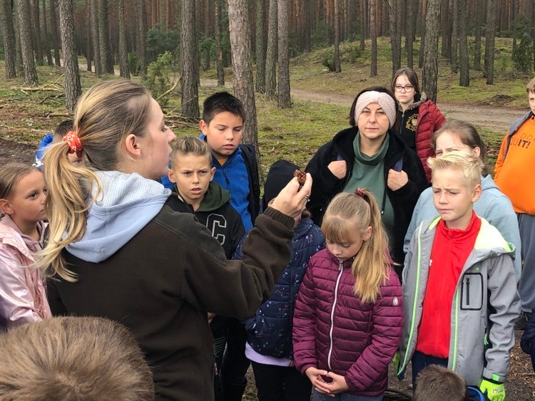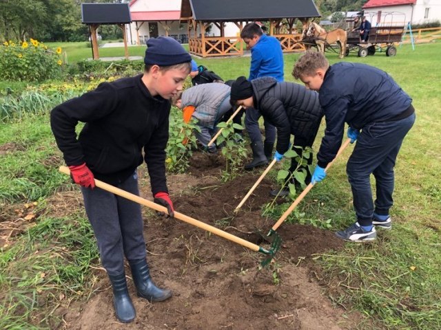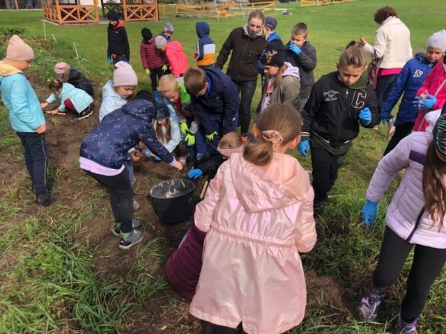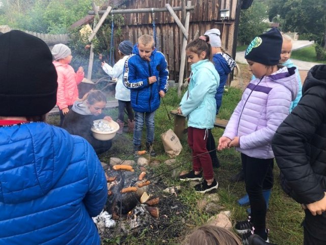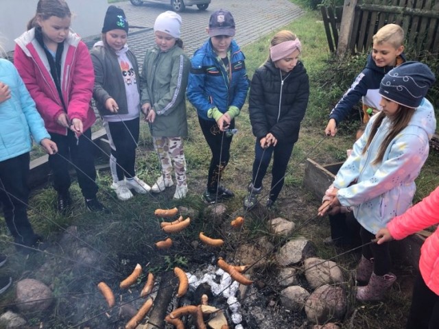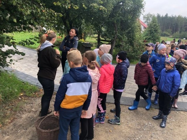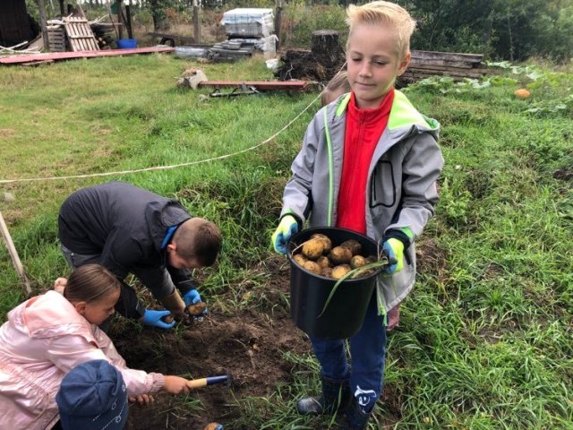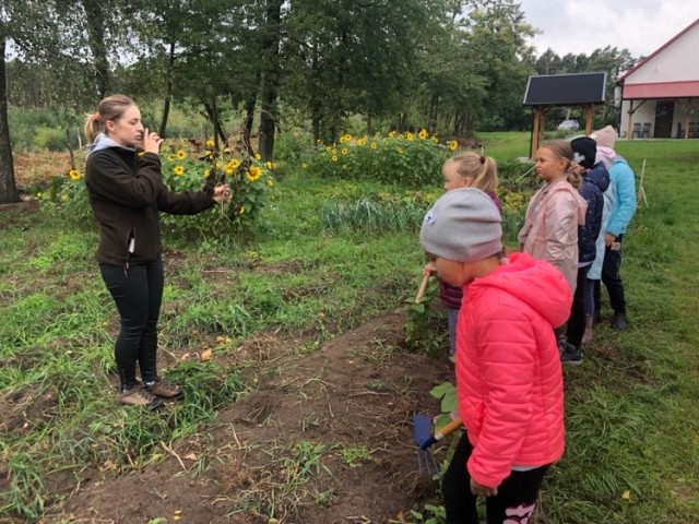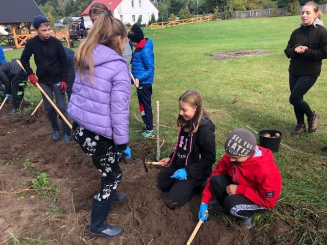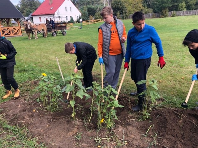 Podczas spaceru po ścieżce przyrodniczej rozpoznawali gatunki drzew i zbierali dary lasu potrzebne do tworzenia zwierzątek z ziemniaków. Następnie dzieci poznały proces uprawy ziemniaków i wyruszyły na pole, gdzie za pomocą motyki mogły je samodzielnie wykopać i pozbierać do koszyków. Po ciężkiej pracy nadszedł czas na relaks przy ognisku, do którego trafiły zbiory.