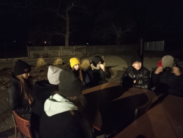 24 lutego 2022 r., uczniowie klasy VIII, wyposażeni w wiedzę zdobytą na zajęciach Koła astronomicznego, udali się późnym wieczorem na teren oddalony od źródeł światła, w poszukiwaniu gwiazdozbiorów zimowego nieba.