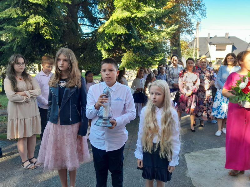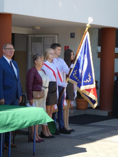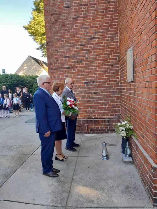 Tego dnia społeczność szkolna zgromadziła się przed kościołem. Samorząd Uczniowski z Panią Dyrektor – Ewą Ostojak oraz przedstawiciele władz gminnych i lokalnych organizacji złożyli kwiaty i zapalili znicze pod tablicą upamiętniającą ofiary II wojny światowej. Po Mszy Świętej, którą odprawił ksiądz kanonik Michał Pacyna, wszyscy udali się do szkoły.