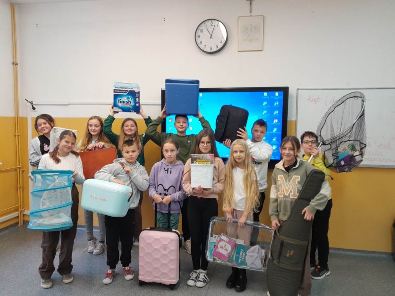 Nauczyciele też nie zawiedli i w tym dniu nie zabrali typowych torebek ani plecaków. Swoje rzeczy przynieśli w wiaderkach, pojemnikach na ciasto, koszykach, czy kartonach. Dzień bez plecaka był okazją do wspólnej zabawy i na pewno będzie długo wspominany przez uczniów.