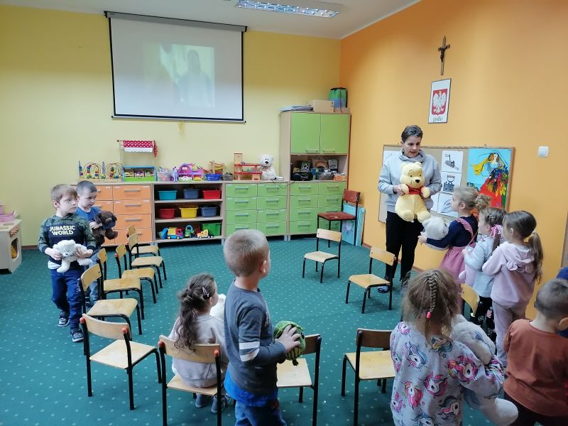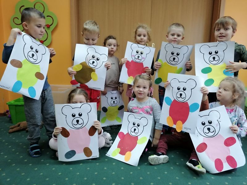 W dniu 25 listopada 2022r przedszkolaki uczestniczyły w obchodach Światowego Dnia Pluszowego Misia. Mimo coraz nowocześniejszych i coraz atrakcyjniejszych zabawek, moda na misie nie przemija. Tego dnia każde dziecko przyszło do przedszkola ze swoim małym lub dużym przyjacielem - misiem. Każdy z nich był piękny i wyjątkowy. Dzieci zostały zaproszone do wspólnej zabawy w misiowej krainie. Poznały historię święta, bawiły się przy piosenkach: ” Pluszowy miś”, „ Jadą, jadą misie”, „ Ja jestem niedźwiadek”. Uczestniczyły w zabawie pt : „Schowaj misia” , wykonały pracę plastyczną, podczas której składały misia z elementów i naklejały na kartkę. Na zakończenie degustowały kolorowe żelowe misie. Ten dzień w przedszkolu pełen był uśmiechu, radości oraz wspólnej zabawy.