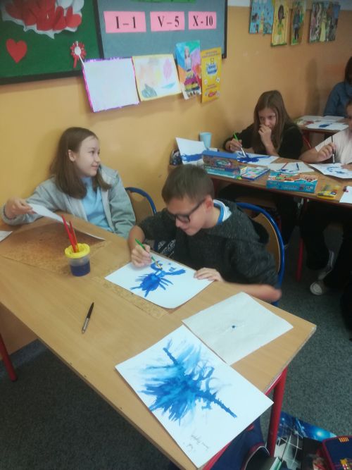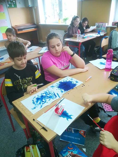 Zaprzyjaźnili się z niezwykłym nauczycielem - Ambrożym Kleksem, szpakiem Mateuszem, Adasiem Niezgódką i jego kolegami. Dowiedzieli się, jak przebiegała nauka w Akademii. W klasie odbyła się nietypowa lekcja kleksografii. Czwartoklasiści robili kleksy, z których powstawały różne przedmioty, rośliny, zwierzęta, postacie. Niektóre z nich były bardzo zabawne. Rozpoznawali je, nadawali im tytuły i układali pomysłowe rymowanki. Uczyli się również przędzenia liter. Literki z książki w postaci czarnej nici zakończonej supełkiem nawijali na szpulkę. W ten sposób czytali fragmenty lektury. W nagrodę za aktywność czwartoklasiści otrzymali kolorowe piegi, które przykleili na swoich twarzach. Lekcja była pełna wrażeń, a nauka przez zabawę pozwoliła uczniom rozwinąć ich wyobraźnię. I choć przygoda z panem Kleksem i jego szkołą dobiegła końca, to niezwykłość tego świata na długo pozostanie w pamięci uczniów. No cóż... Teraz czas na sprawdzian z lektury!