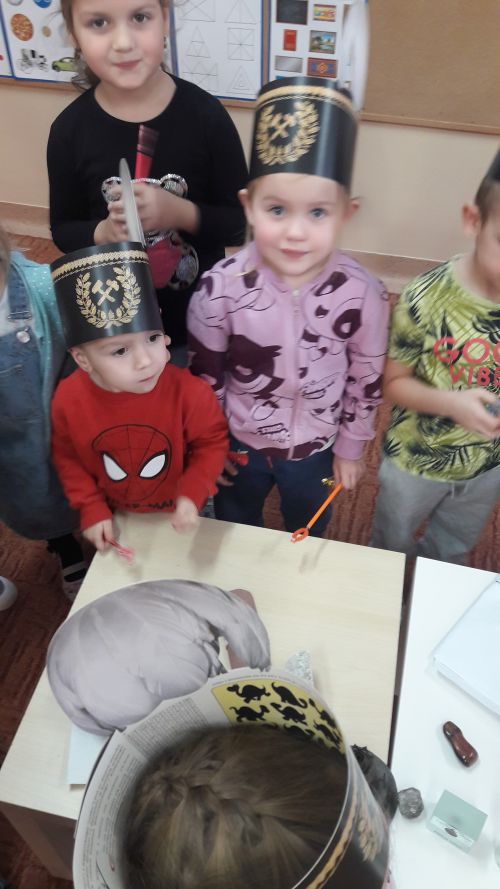 Z okazji Barbórki do przedszkola przybył tata Ulki, pan Łukasz Rapalski, który pracuje w ZZNiG. Gość zaprezentował się w galowym stroju górniczym, dzięki czemu najmłodsi mogli poznać wszystkie elementy ubioru.