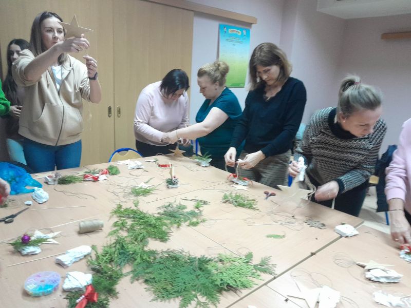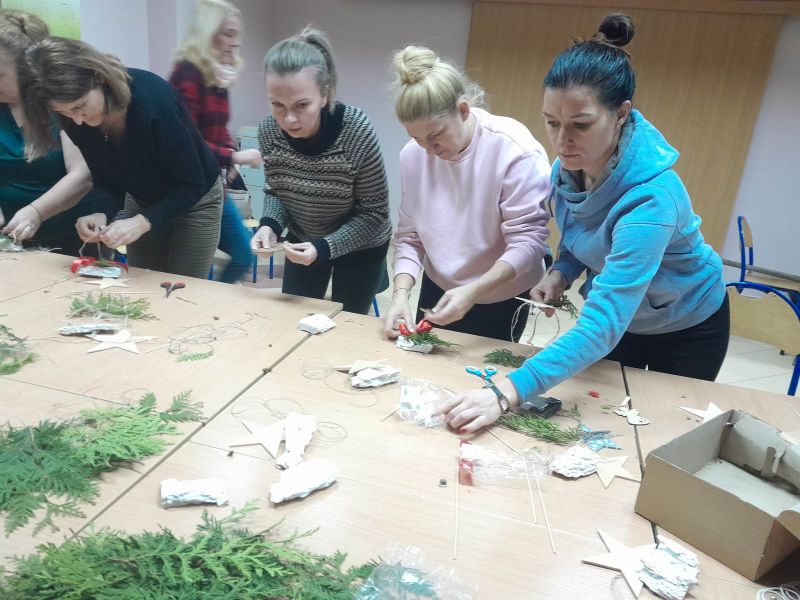 W poniedziałek, 5 grudnia zorganizowaliśmy warsztaty świąteczne dla rodziców i nauczycieli. Uczestnicy wspólnie wykonali piękne, bożonarodzeniowe ozdoby, które będzie można zakupić na kiermaszu podczas corocznego, tradycyjnego spotkania „Święta z kulturą”. Warsztaty te były okazją do spotkania, rozmów, kreatywnego spędzenia czasu i pogłębienia współpracy szkoły z rodzicami.