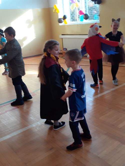 Bal karnawałowy jest atrakcją bardzo lubianą również przez dzieci, dostarcza im wielu przeżyć i radości. Tak też było u nas, w dniu 16 lutego 2023 roku. Na pięknie udekorowanej sali sportowej pojawiły się kolorowe postaci. Dzieci przebrane były za bohaterów znanych bajek, można było zobaczyć: wróżki, królewny, biedronki, księżniczki, rycerzy, piratów, policjantów, żołnierzy, Żówie Ninja, Batmany, …nie sposób zliczyć i wymienić tych wszystkich postaci. Na sali podczas pląsów było bardzo kolorowo, wszyscy bawili się wesoło, uśmiech nie znikał z twarzy mimo chwilowego zmęczenia. Dodatkową atrakcją były konkursy i zabawy, przygotowane przez starsze koleżanki, które dostarczyły mnóstwo radości. Zabawę uprzyjemniły pyszne pączki, które szybko znikały z talerzy. Kiedy czas zabawy dobiegł końca dzieci z żalem opuszczały salę. Bal umożliwił dzieciom i wychowawcom spędzenie czasu w miłej atmosferze. Wspólna zabawa przyniosła wiele radości naszym wychowankom, a to było głównym celem tego balu.