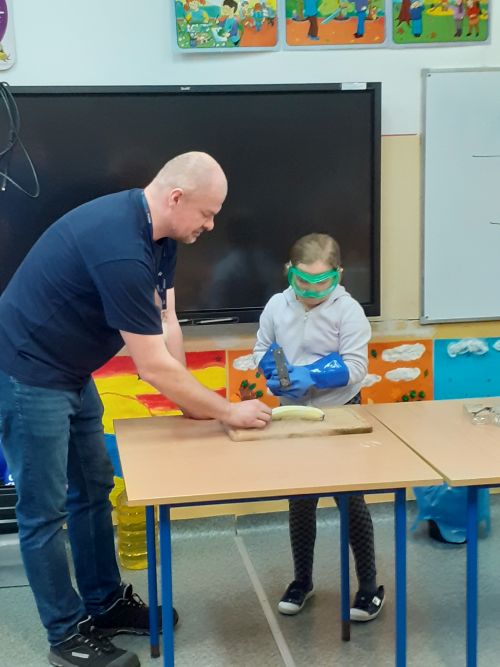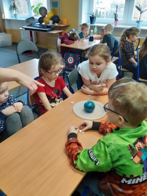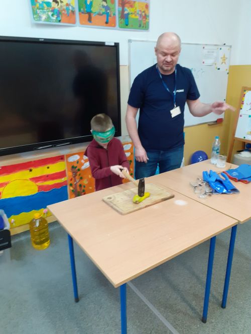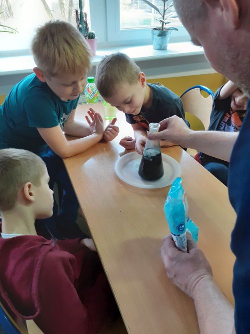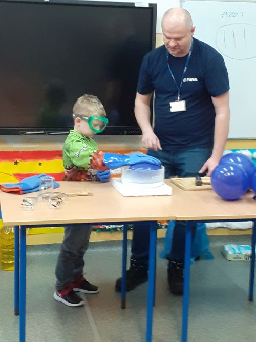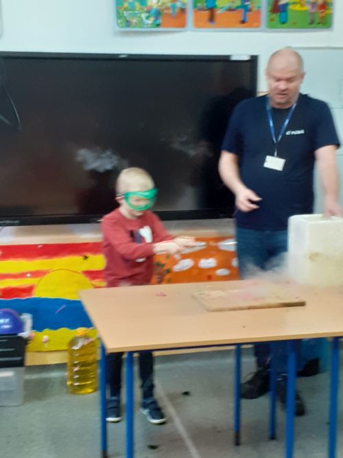 Warsztaty poprowadził Pan Mariusz, który przygotował efektowny pokaz naukowy, wsparty solidną dawką wiedzy. Uczniowie mieli możliwość samodzielnie przeprowadzić eksperymenty. Oczywiście pod ścisłym nadzorem pana Mariusza z zachowaniem wszelkich zasad bezpieczeństwa. Wszyscy uczniowie byli bardzo zachwyceni.