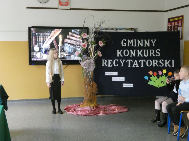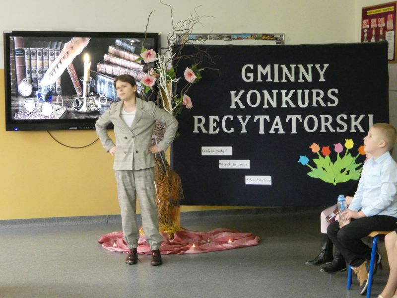 15 marca br. odbył się w naszej szkole Gminny Konkurs Recytatorski. Uczestniczyło w nim 24 uczniów, którzy jako zwycięzcy etapów szkolnych, reprezentowali swoje placówki.