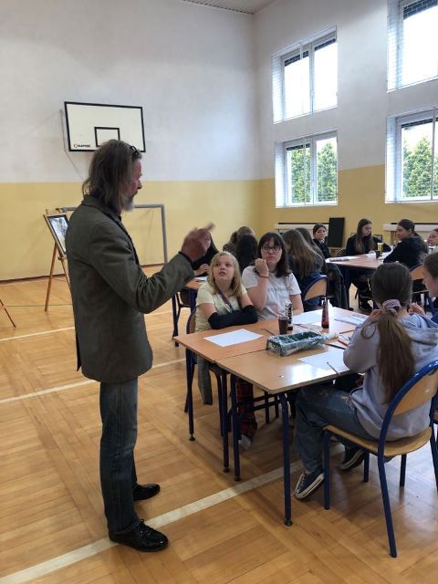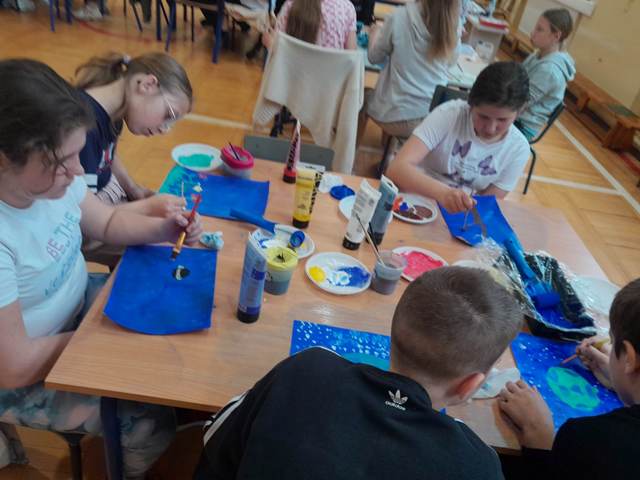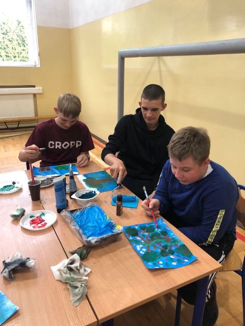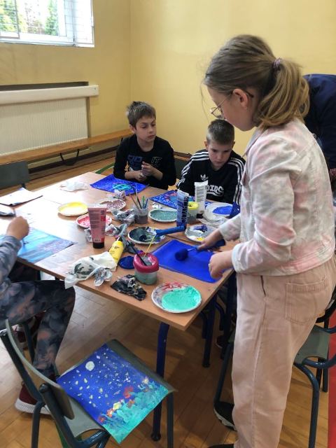 W poniedziałek, 15 maja uczniowie klas 4-8 mieli okazję uczestniczyć w warsztatach malarskich prowadzonych przez pana Roberta Fochlera.