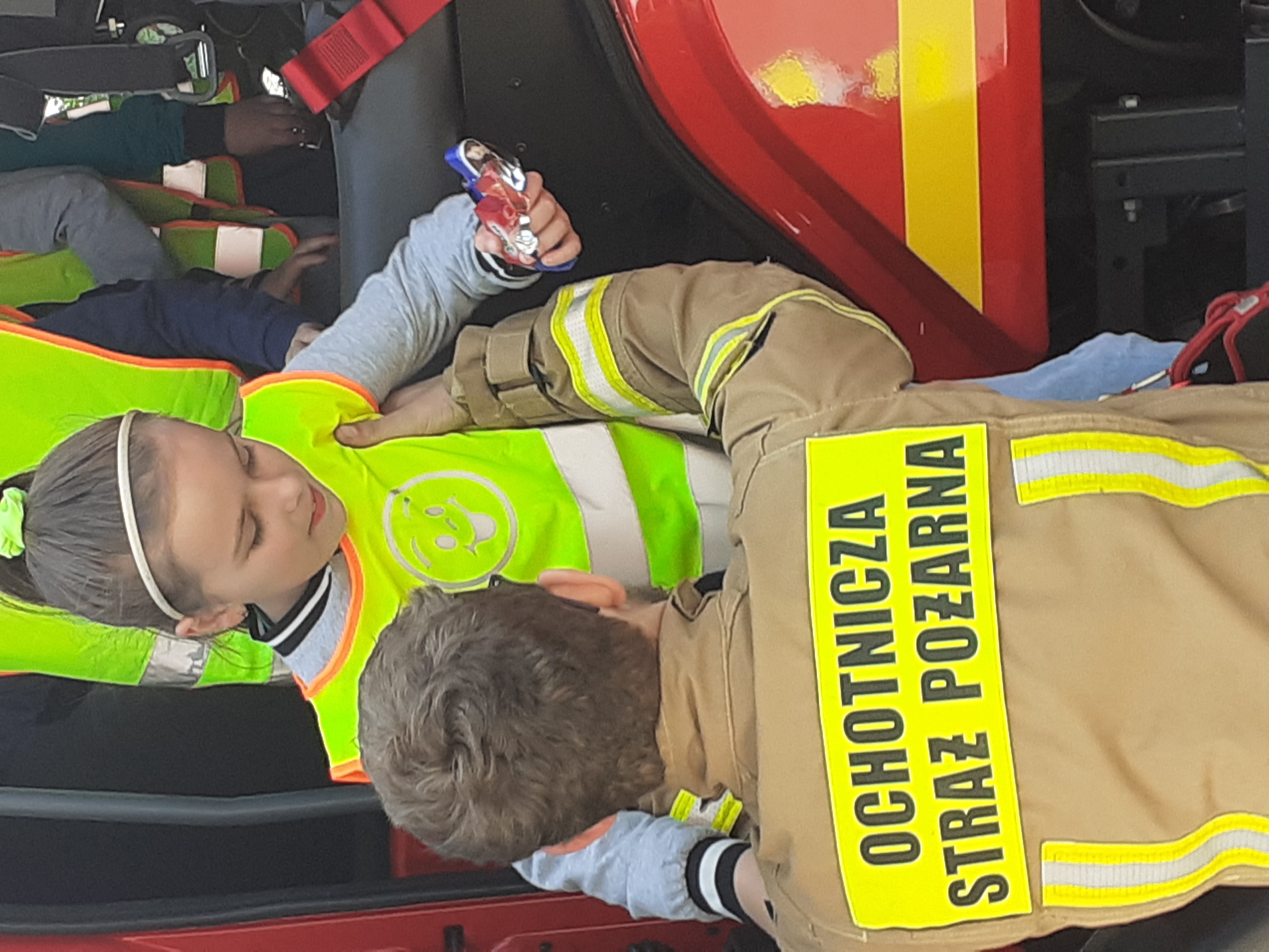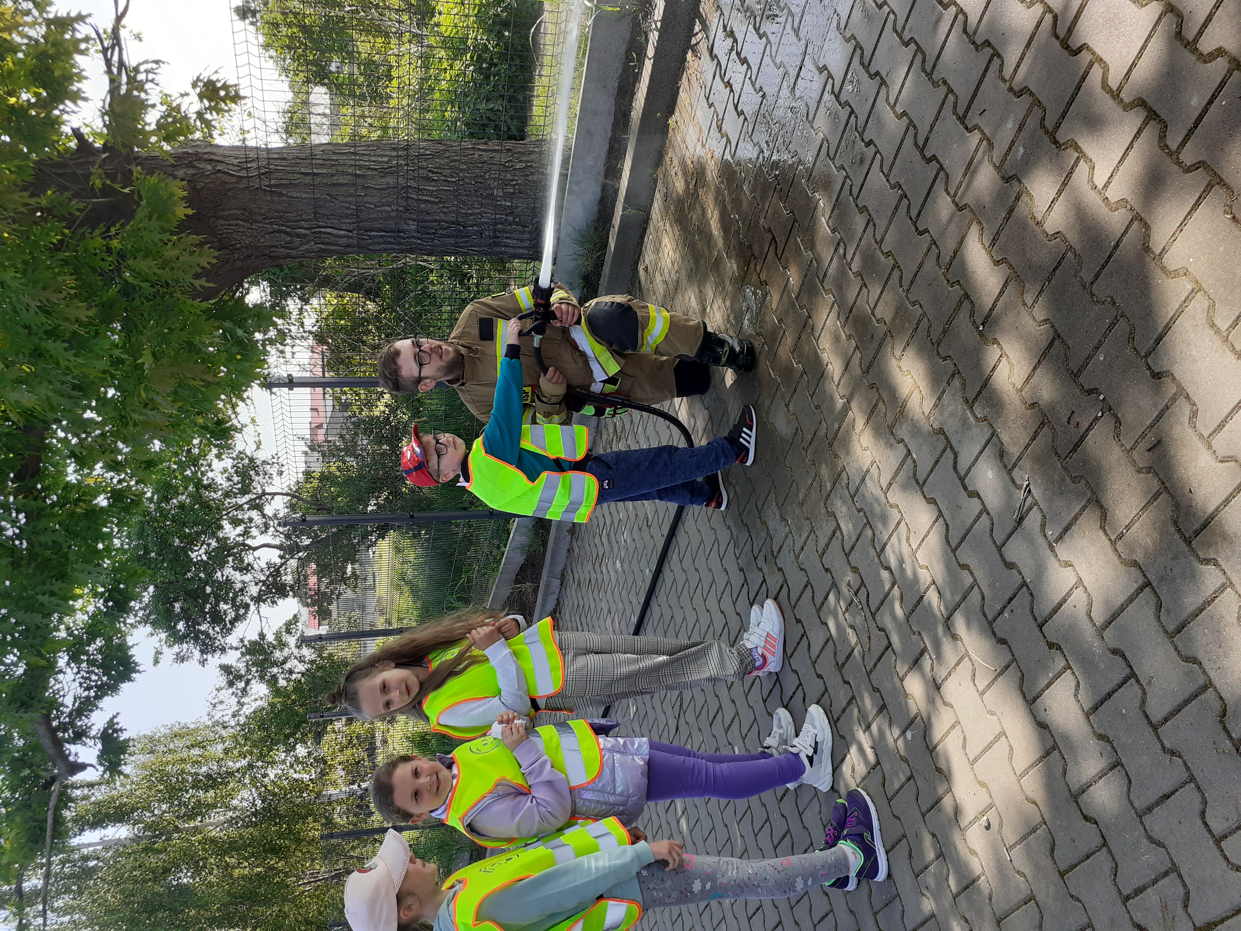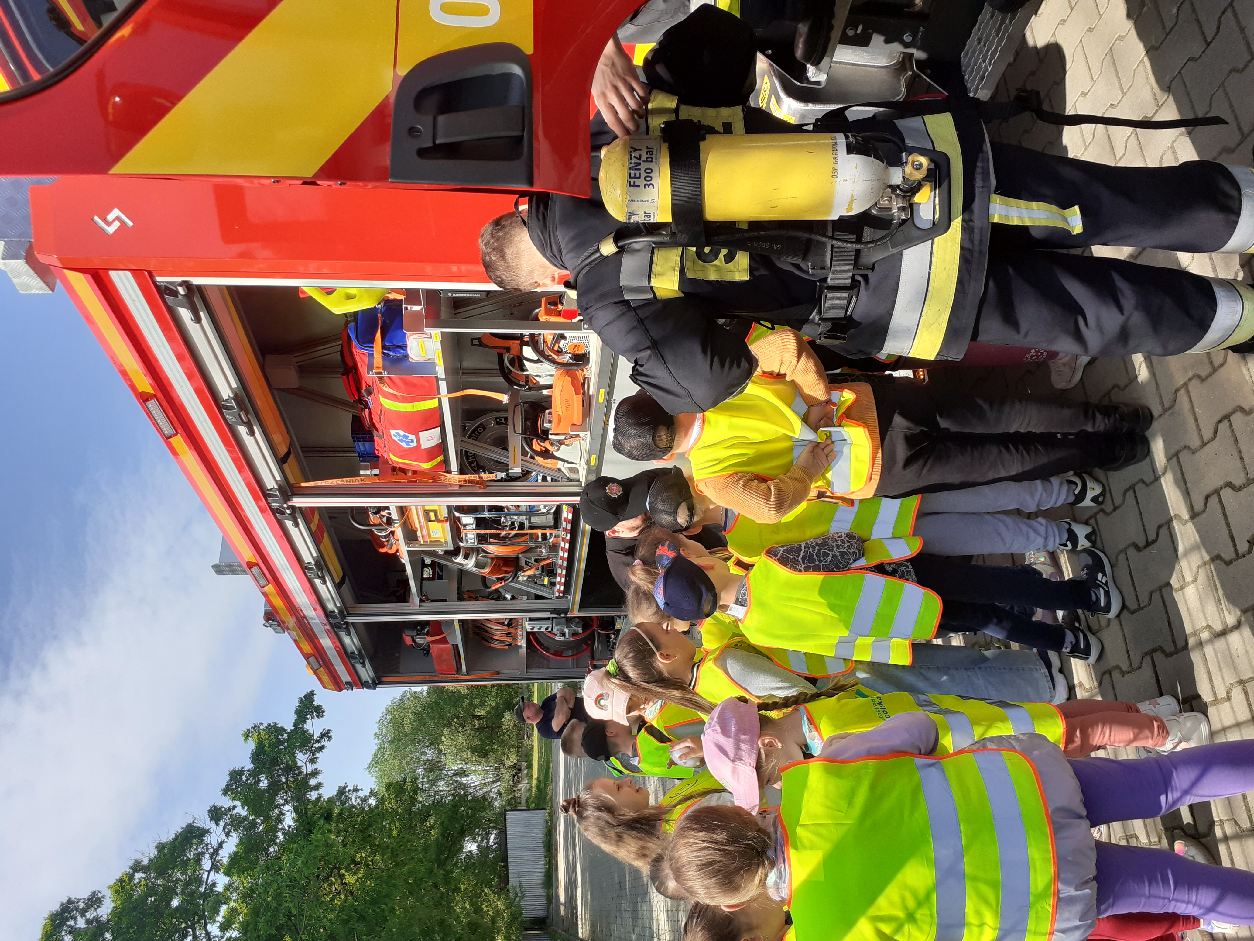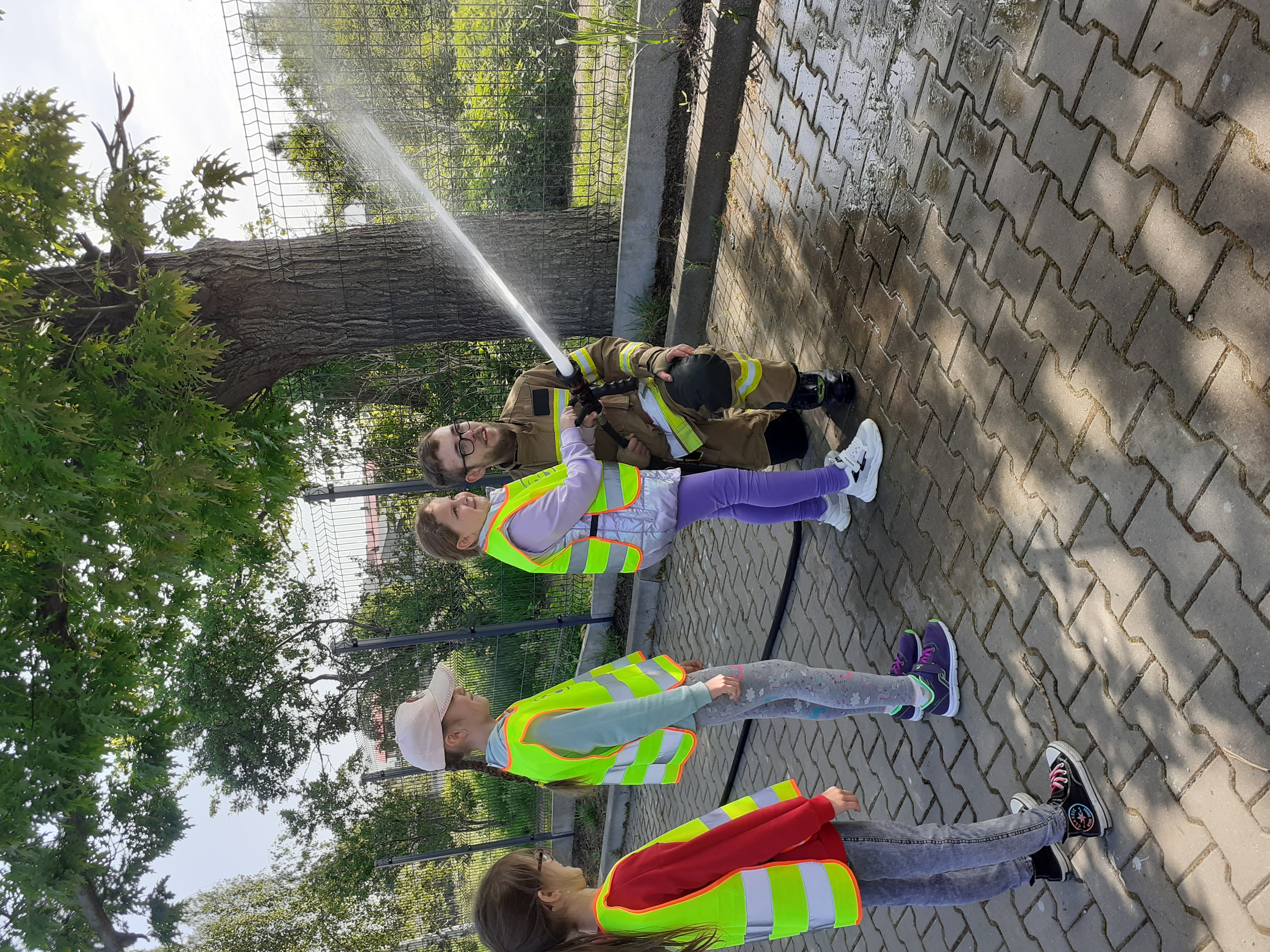 Dzieci dowiedziały się, że strażacy nie tylko gaszą pożary, ale również są wzywani do wypadków samochodowych, do zalanych domów, powalonych drzew, a także ratują zwierzęta. Podczas spotkania strażacy uświadomili dzieciom jak zachowywać się w sytuacjach zagrożenia, oraz jak powiadomić służby ratownicze i udzielać pierwszej pomocy. Wielką radość sprawiło uczniom obejrzenie z bliska wozu strażackiego oraz zapoznania się z jego wyposażeniem. Wszystkie dzieci mogły wypróbować swoich sił i zmierzyć się z prawdziwym wężem strażackim. Wychowankowie zwiedzili również remizę strażacką. Jednak największą atrakcją dla nich była przejażdżka wozem strażackim.