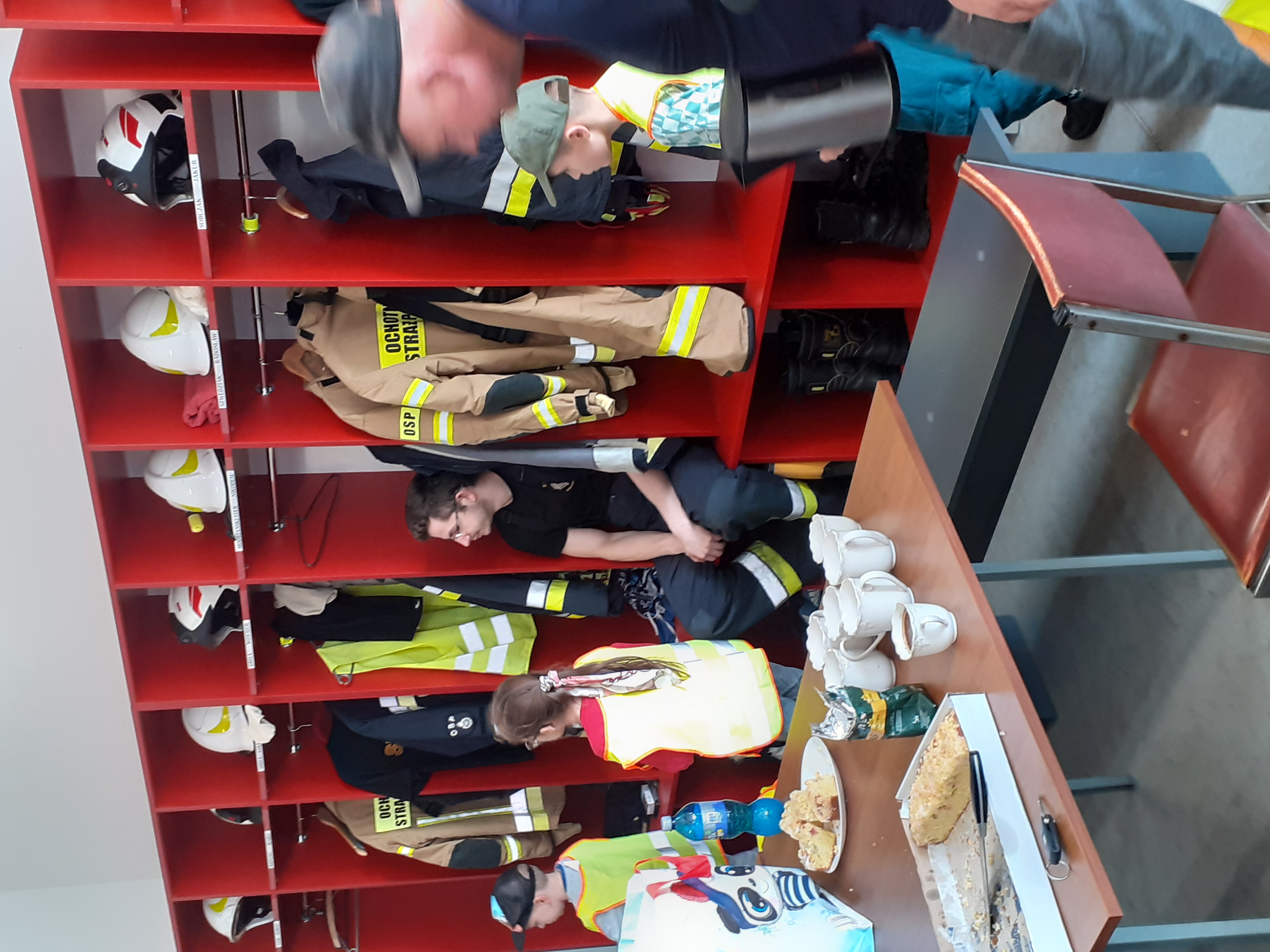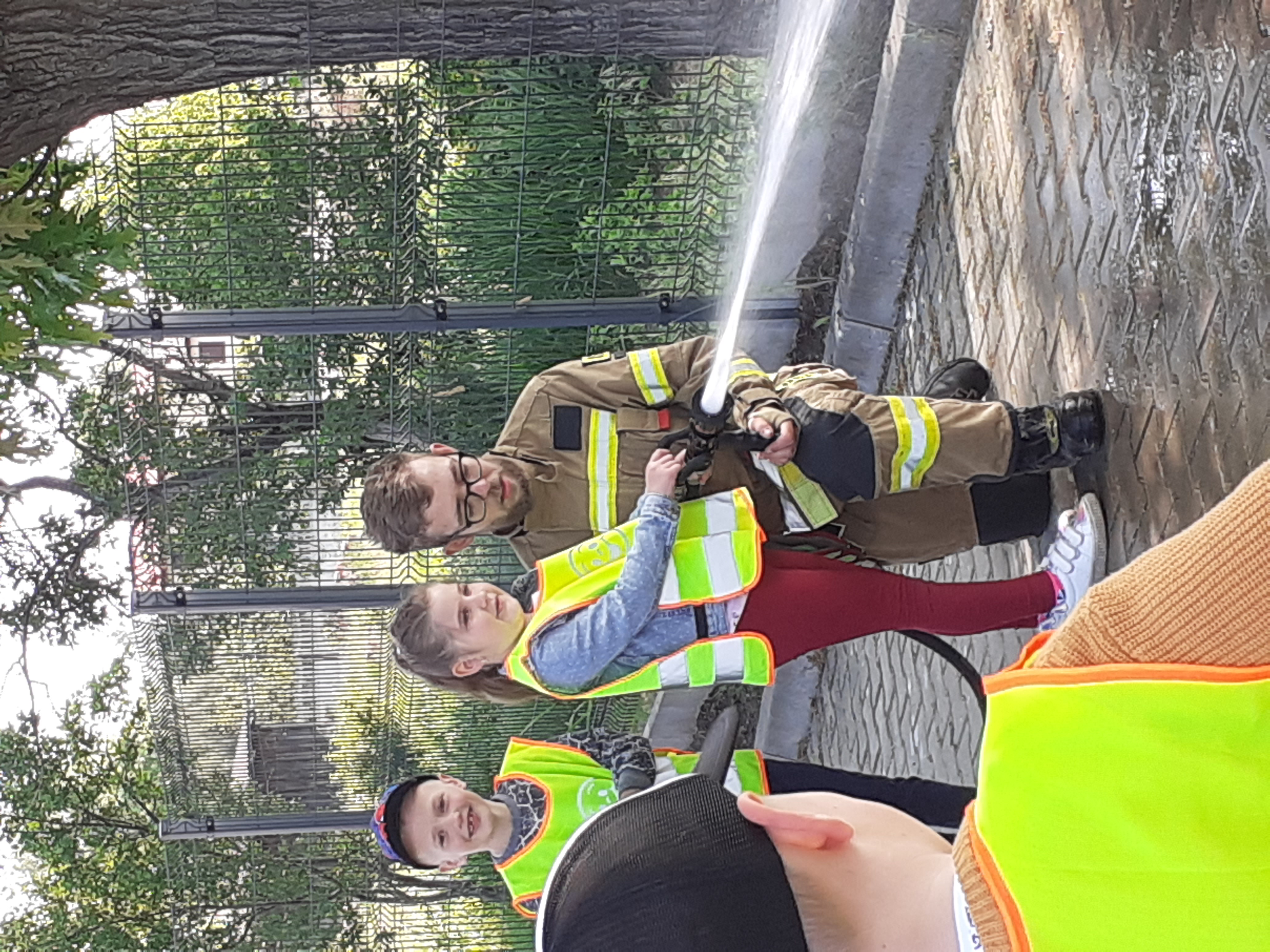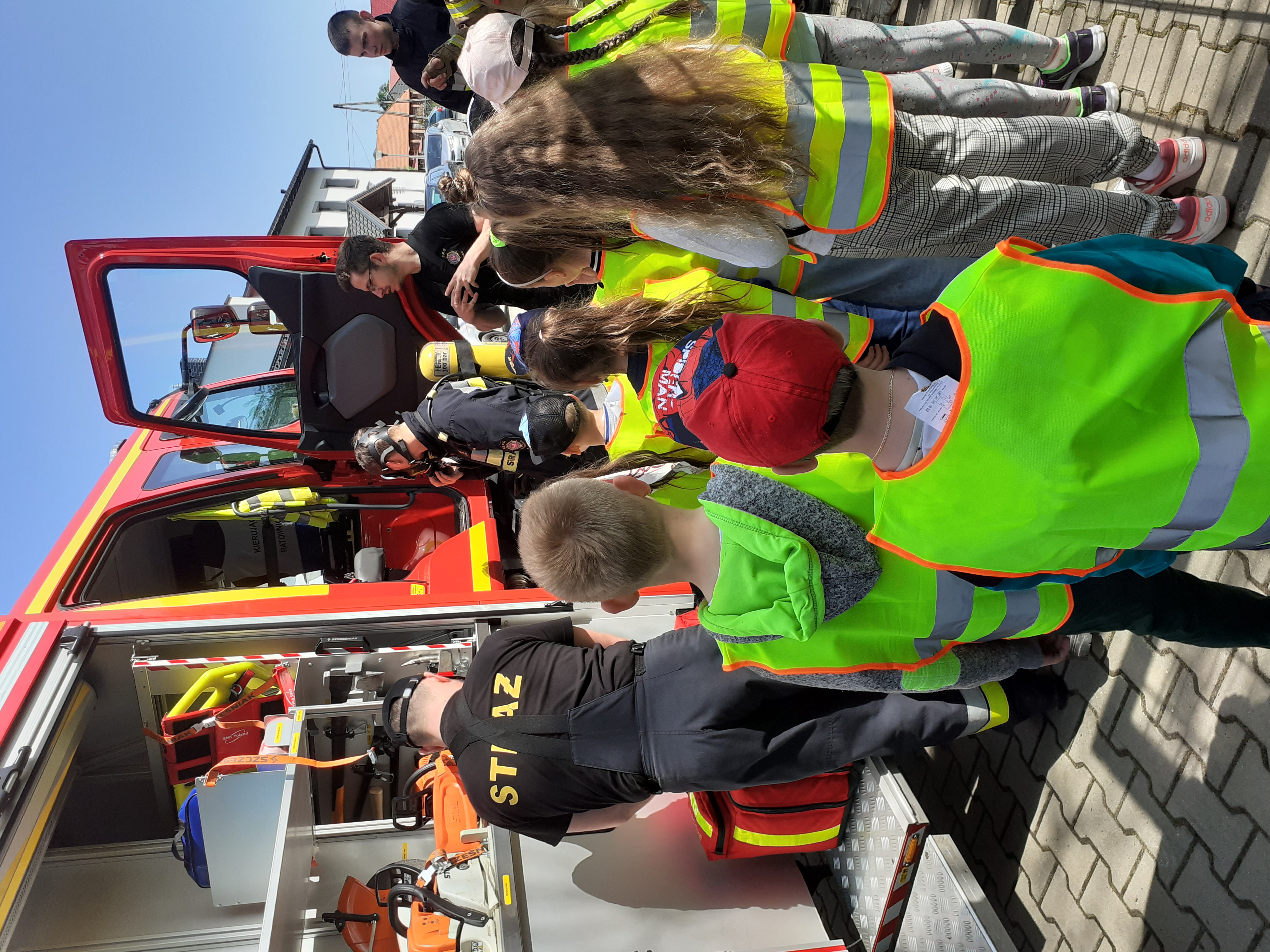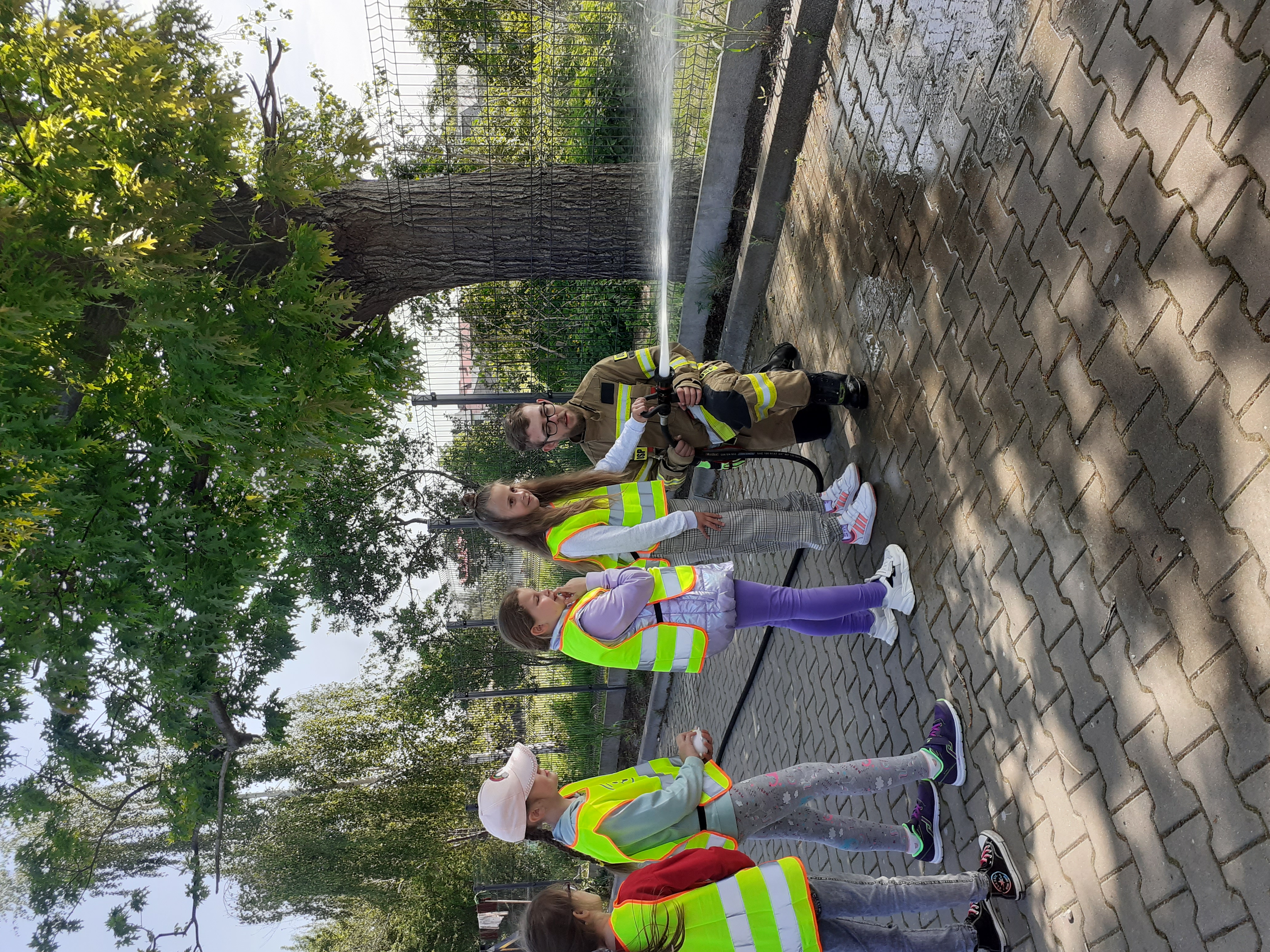 Dzieci dowiedziały się, że strażacy nie tylko gaszą pożary, ale również są wzywani do wypadków samochodowych, do zalanych domów, powalonych drzew, a także ratują zwierzęta. Podczas spotkania strażacy uświadomili dzieciom jak zachowywać się w sytuacjach zagrożenia, oraz jak powiadomić służby ratownicze i udzielać pierwszej pomocy. Wielką radość sprawiło uczniom obejrzenie z bliska wozu strażackiego oraz zapoznania się z jego wyposażeniem. Wszystkie dzieci mogły wypróbować swoich sił i zmierzyć się z prawdziwym wężem strażackim. Wychowankowie zwiedzili również remizę strażacką. Jednak największą atrakcją dla nich była przejażdżka wozem strażackim.