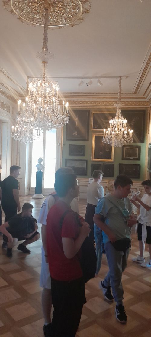 Pierwszym punktem wycieczki szkolnej było zwiedzanie Muzeum Łazienek Królewskich, czyli letniej Rezydencji Króla Stanisława Augusta Poniatowskiego. Barokowy obiekt wraz z przyległym do niego parkiem powstał w XVIII wieku. Mogliśmy tutaj podziwiać wnętrza i ekspozycje muzealne, a także poznać historię zamku. Zachwyciły nas przede wszystkim bogate i pełne przepychu Apartamenty Królewskie, a także interesująca kolekcja sztuki mieszcząca się w Galerii Arcydzieł. Dalszym etapem naszej wycieczki było zwiedzanie warszawskiej Starówki z pięknymi, kolorowymi, zabytkowymi kamienicami. Najbardziej urzekający był widok Rynku Starego Miasta, na którym znajduje się Pomnik Syrenki. Dodatkowej magii temu miejscu nadawał kataryniarz, który wygrywaną muzyką przeniósł nas do Warszawy z dawnych lat. Tam uczniowie mieli chwilę na zakup drobnych pamiątek. Następnie autokarem udaliśmy się na ulicę Złotą w Warszawie, gdzie znajduje się autentyczny fragment Muru Getta Warszawskiego. Umieszczona jest na nim tablica z napisem: „ W okresie 15 XI 1940 r. – 20 XI 1941 r. mur ten był granicą getta”. Zachowany fragment, to obszar tzw. Dużego getta, czyli pierwotnego obszaru dzielnicy żydowskiej w latach 1940-1941. Dwie brakujące cegły zostały podarowane Muzeum Holocaustu w Waszyngtonie, gdzie wykonano również replikę fragmentu muru. Istniejący największy fragment muru Getta Warszawskiego jest ważnym elementem wpływającym na kształtowanie świadomości narodowej. Stanowi bowiem jedyny zachowany w tak dużej części ślad męczeństwa i walki Żydów z okresu II wojny światowej.
