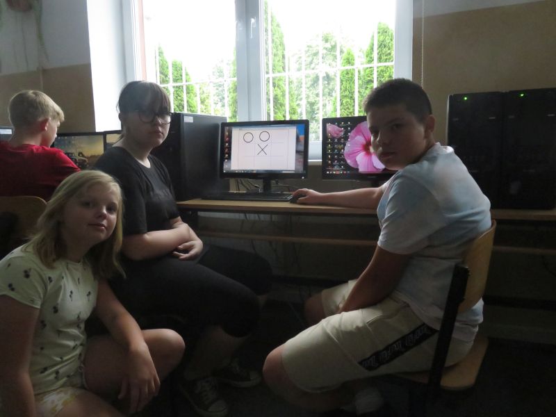 Efektem końcowym zajęć był projekt uczniowski polegający na napisaniu programu, w dowolnie wybranym języku programowania, realizującego dowolnie wybrane zagadnienie. Uczestnicy warsztatów świetnie poradzili sobie z zadaniem. Uczniowie klasy VI zaprogramowali grę „Kółko i krzyżyk” w programie Scratch, natomiast uczniowie klasy VIII napisali program gry „Snake” w programie Python.