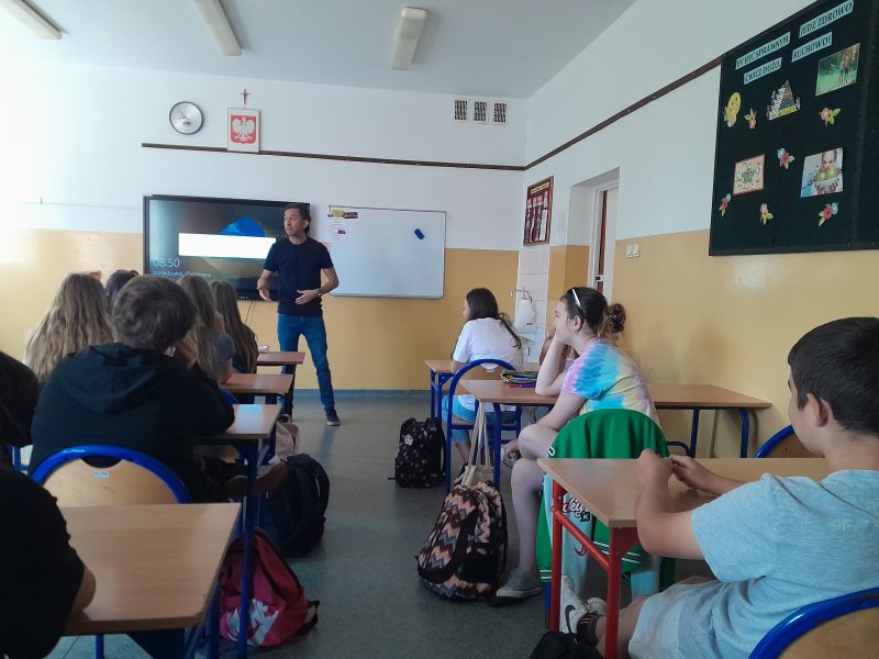 W dn. 12 czerwca naszą szkołę odwiedzili lektorzy szkoły językowej Leaderschool z Ostrowa Wielkopolskiego. Pani Zuzanna Stachurska przeprowadziła zajęcia w kl. I – IV, a pan Martin Plascencia w kl. V – VIII.