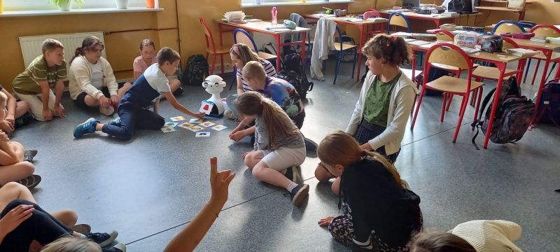 Celem zajęć było pokazanie innych metod nauczania języka angielskiego. Jedną z nich była „Leo English”, czyli wielozmysłowa metoda nauczania j. angielskiego dla dzieci. Przy pomocy robota EMYS lektorka przeprowadziła różne gry językowe, które aktywizowały wszystkich uczniów i pokazały, że języka można uczyć się również poprzez zabawę. Uczniowie starszych klas dowiedzieli się, że nauka języków nie tylko pozwala odnieść sukces na polu zawodowym, ale także pomaga zrozumieć, jak ludzie z innych kultur myślą, widzą życie i świat. Obydwoje lektorzy starali się pokazać, że posługiwanie się językiem angielskim jest w dzisiejszych czasach niezmiernie ważną umiejętnością. Za to im dziękujemy i liczymy na dalszą współpracę.