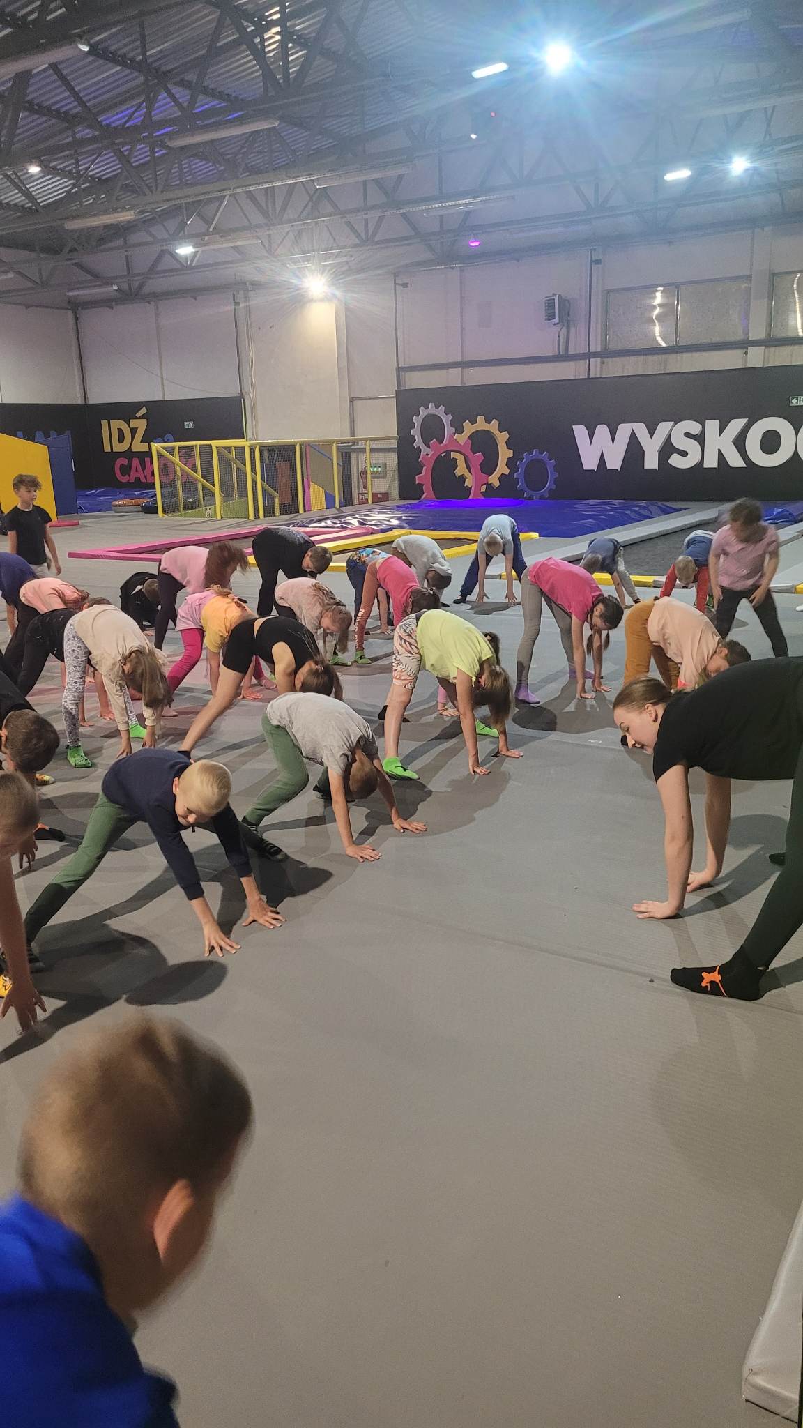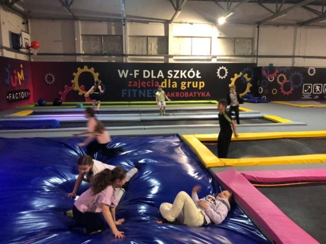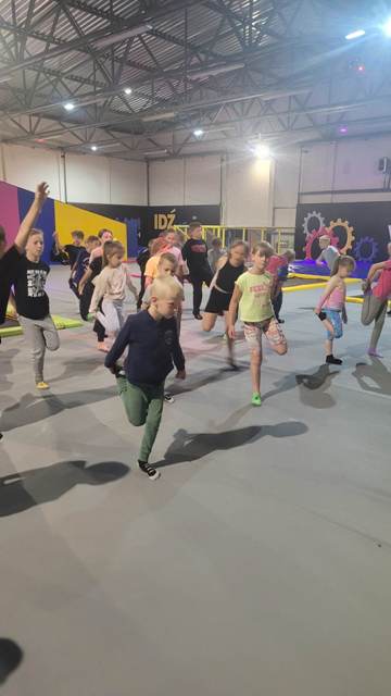 Po zapoznaniu się z regulaminem parku i rozgrzewce pod okiem instruktora, uczestnicy korzystali z szeregu atrakcji, m.in. strefy trampolin, strefy malucha, poduszek powietrznych, parku linowego i zjazdów pontonowych. Skacząc na trampolinach dzieci rozwijały ogólną sprawność fizyczną, koordynację oraz kształtowały właściwą postawę ciała. Wspólny pobyt w parku rozrywki pozwolił im aktywnie spędzić czas, wprawił ich w znakomity nastrój i wyzwolił mnóstwo pozytywnej energii.