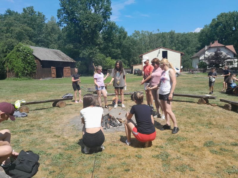 Dużą atrakcją było również ognisko, na którym piekli wszyscy kiełbaski. Ostatnim punktem wycieczki był pomnik przyrody ożywionej - Dąb „Jan”, który ma już ponad 400 lat. Jak głosi legenda, w cieniu tego dębu odpoczywał kiedyś król Jan III Sobieski.