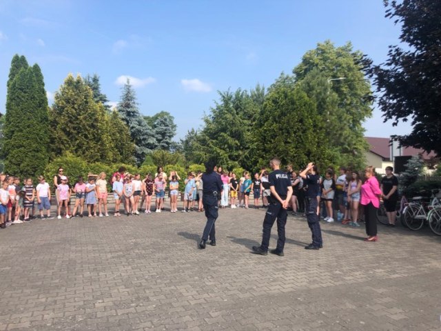 W celu zwiększenia poziomu bezpieczeństwa dzieci i młodzieży w czasie wakacji 22 czerwca 2023 r. przedstawiciele Policji przeprowadzili spotkanie profilaktyczne dla uczniów.