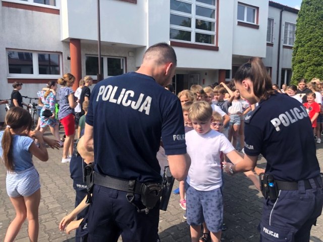 Omówili podstawowe zasady bezpiecznego zachowania się podczas wakacyjnego wypoczynku, przypomnieli, jak bezpiecznie poruszać się po drogach, zapoznali z modelami bezpiecznych zachowań i sposobami szybkiego reagowania na zagrożenia. Przestrzegali również najmłodszych, jak mają się zachować w sytuacjach, gdy zostają sami w domu oraz w kontaktach z osobami obcymi.