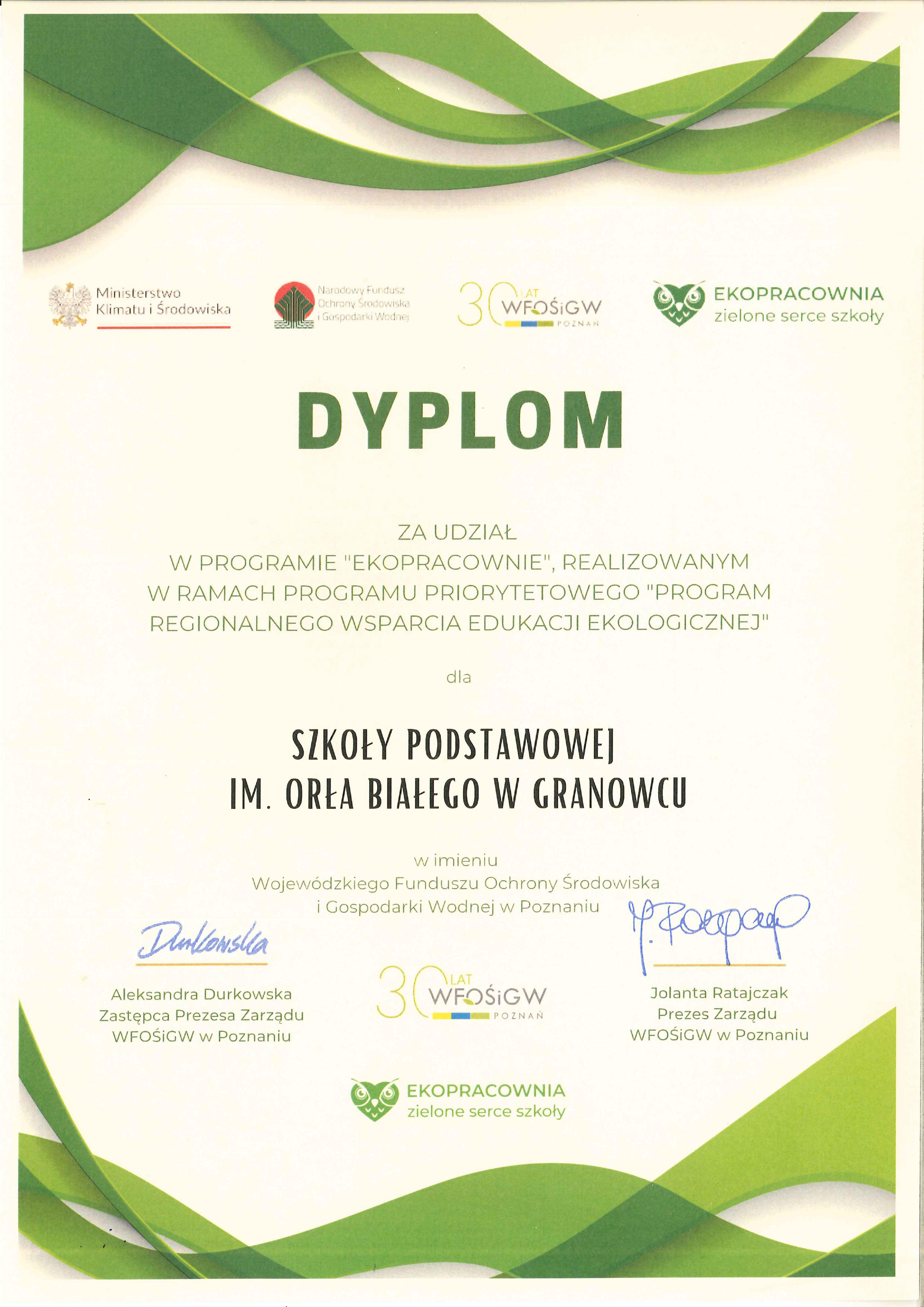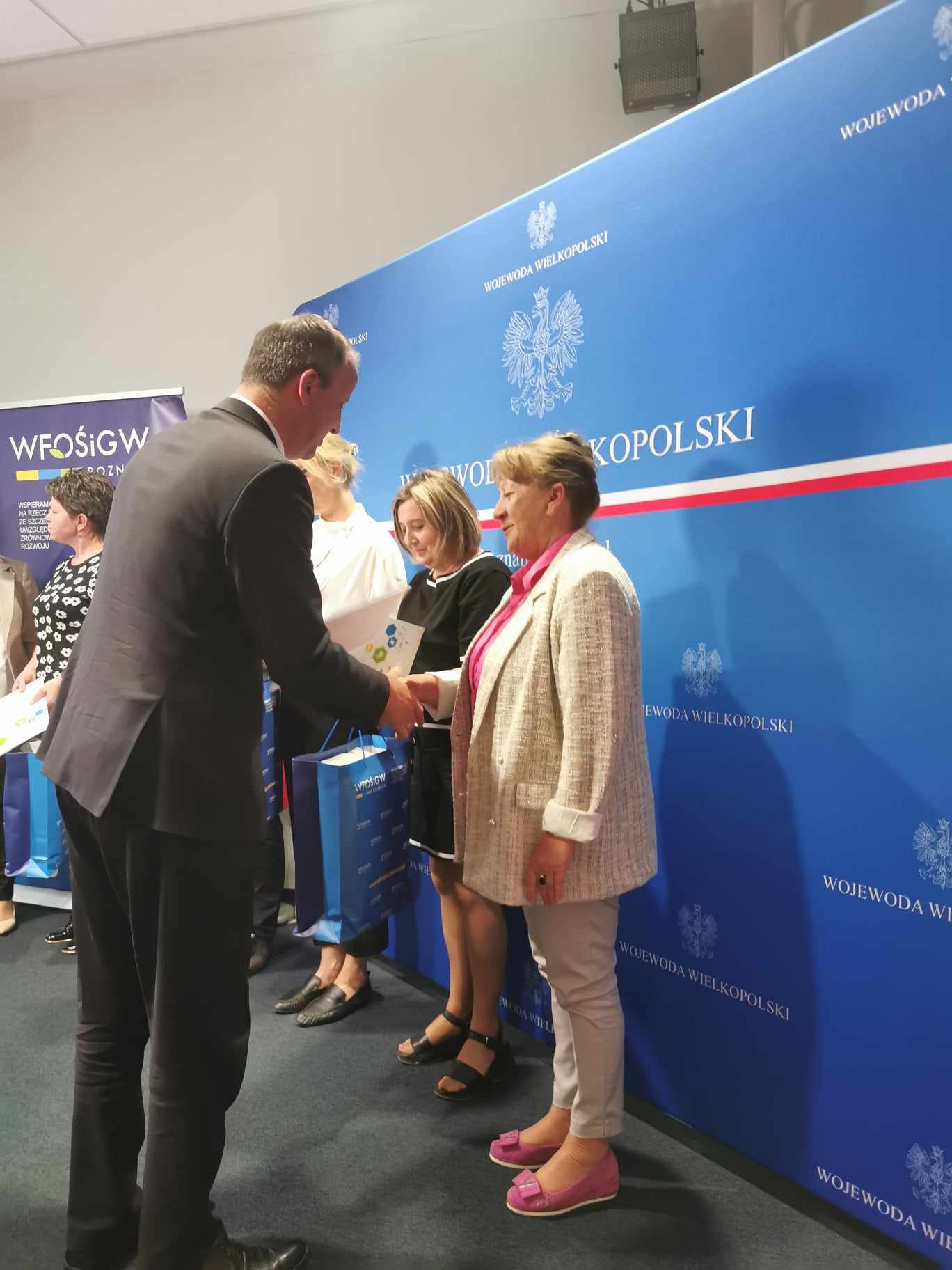W dniu 5 czerwca 2023 r. w Wielkopolskim Urzędzie Wojewódzkim w Poznaniu dyrektor Ewa Ostojak odebrała z rąk Wojewody Wielkopolskiego Michała Zielińskiego oraz Prezes Wojewódzkiego Funduszu Ochrony Środowiska i Gospodarki Wodnej w Poznaniu Jolanty Ratajczak dyplom w uznaniu za uzyskanie dofinansowanie na założenie w szkole pracowni o tematyce odnawialnych źródeł energii.