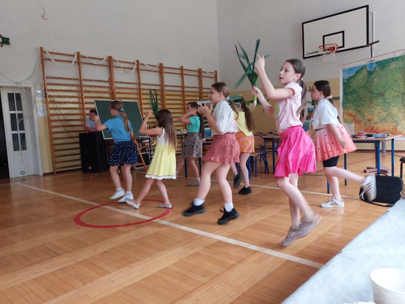 Dzieci zaprezentowały swoje zdolności artystyczne: wokalne, taneczne oraz aktorskie. Całą klasą zaśpiewali dla rodziców dwie piosenki „Prosimy was o uśmiech” oraz „Wakacje” z repertuaru kabaretu „Otto”. Dziewczynki zatańczyły Just Dance „Levan Polkka:, a chłopcy wykonali układ taneczny do utworu Shakiry „Waka Waka”. Gwoździem programu był kabaret „Ze szkolnej ławki”. Uczniowie pokazali rodzicom kilka scen, które im się przytrafiły w ciągu tych trzech lat nauki. W rolę nauczycielki wcieliła się Gabrysia. Na końcu występów urządzili dla rodziców pokaz mody. Z gracją zaprezentowali samodzielnie przygotowane stroje. W podziękowaniu za trzy lata pracy przygotowali dla wychowawczyni pamiątkowy obraz z kolorowych dłoni i uroczyście wręczyli.