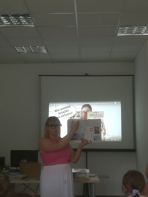 Pierwszym etapem wizyty były warsztaty. Pani Martyna, pracownik księgarni, przedstawiła uczniom prezentację pt. „Jak powstaje książka?”. Zapoznała ich z tajnikami „świata książki” i kolejnymi etapami jej powstawania. To dzięki niej uczniowie dowiedzieli się, kim jest autor i pisarz; czym zajmują się: redaktor, grafik, ilustrator, korektor tekstu; jak ułożony jest tekst w książce, jak zbudowana jest jej okładka i w jakich formatach może występować. Poznali również takie pojęcia jak: paginacja, tytulatura, gilotyna, wydawnictwo, ozdobna ramka, projekt, numer ISBN. Uważne słuchanie i oglądanie filmu oraz różnych książek zaowocowało tym, że uczniowie świetnie odpowiadali na pytania prowadzącej warsztaty i doskonale poradzili sobie z rozwiązaniem testu „Książkowy zawrót głowy”.