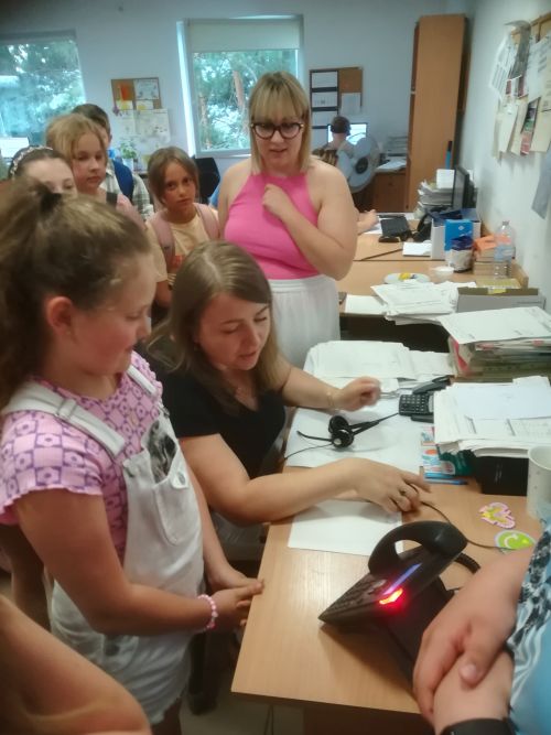 Podczas pobytu w księgarni odwiedziliśmy panią Kamilę, która pełni funkcję opiekuna naszej szkoły. Przyjmuje od nas zamówienia książek i lektur oraz realizuje je. Informuje o ciekawych ofertach i kiermaszach książek. To właśnie ze stanowiska jej pracy połączyliśmy się telefonicznie z sekretariatem naszej szkoły i przeprowadziliśmy krótką rozmowę.