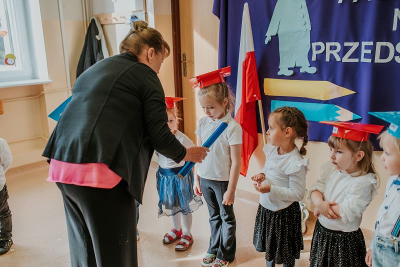 Na pamiątkę tego ważnego dnia dzieci otrzymały dyplomy i upominki. Dla przedszkolaków było to wielkie przeżycie, a dla Rodziców powód do dumy i zadowolenia ze swoich pociech.