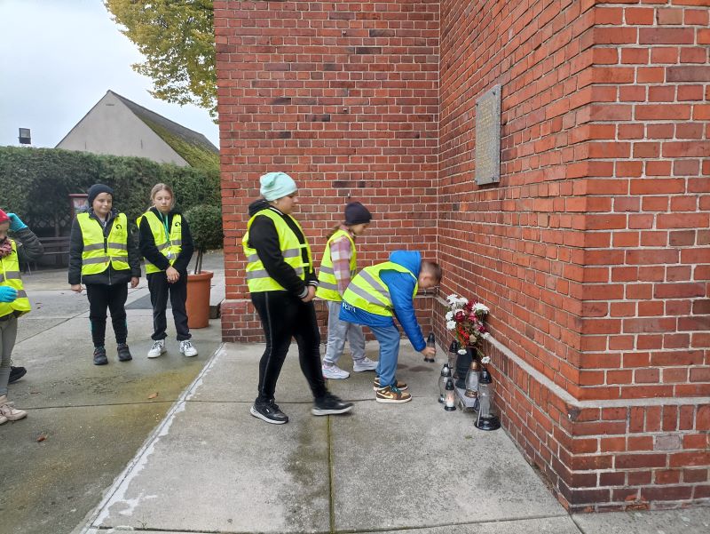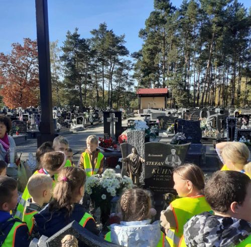 Wraz z wychowawcami odwiedzili grób pani Grzesiak – byłej nauczycielki, wieloletniego proboszcza naszej parafii – ks. Stefana Kühna oraz zmarłego w tym roku pracownika naszej szkoły – pana Krzysztofa Doktora. Ponadto zapalili znicze pod tablicą upamiętniającą ofiary II wojny światowej oraz pod figurą bł. Siostry Gwidony. Najstarsze klasy – VI i VII wraz z wychowawczyniami zadbały także o uporządkowanie cmentarza ewangelickiego przy ulicy Spokojnej.