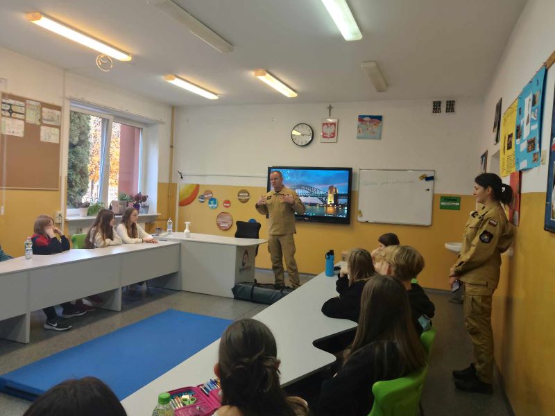 W czwartek, 16 listopada naszą szkołę odwiedzili nietypowi goście- st. Kpt. Tomasz Chmielecki oraz st. Str. Urszula Minta. Na co dzień pracują oni w Komendzie Powiatowej Państwowej Straży Pożarnej w Ostrowie Wielkopolskim w zespole prasowym.