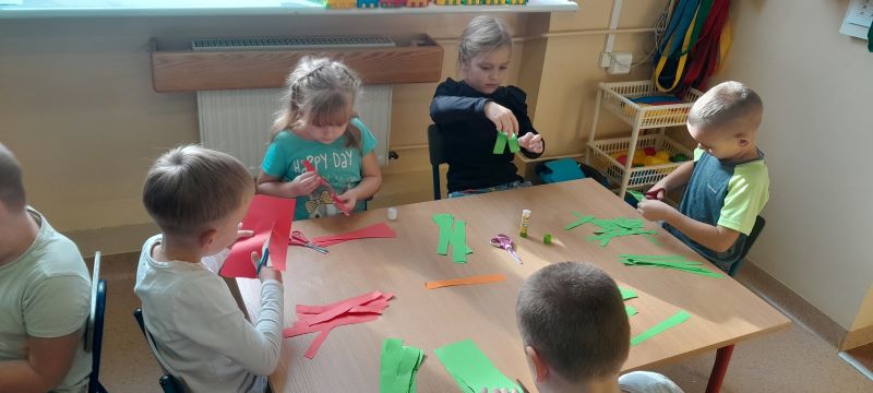Zadanie nr 4 pt.: „D – Długi wąż” – Zadaniem dzieci było wykonanie pracy plastycznej – węża oraz naśladowanie ćwiczeń w syczeniu.